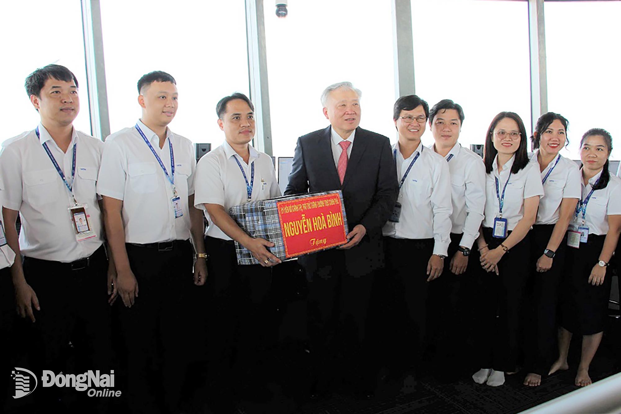 | Ủy viên Bộ Chính trị, Phó Thủ tướng Thường trực Chính phủ Nguyễn Hòa Bình tặng quà động viên các lực lượng làm việc tại Trung tâm Kiểm soát không lưu Long Thành. Ảnh: Phạm Tùng |