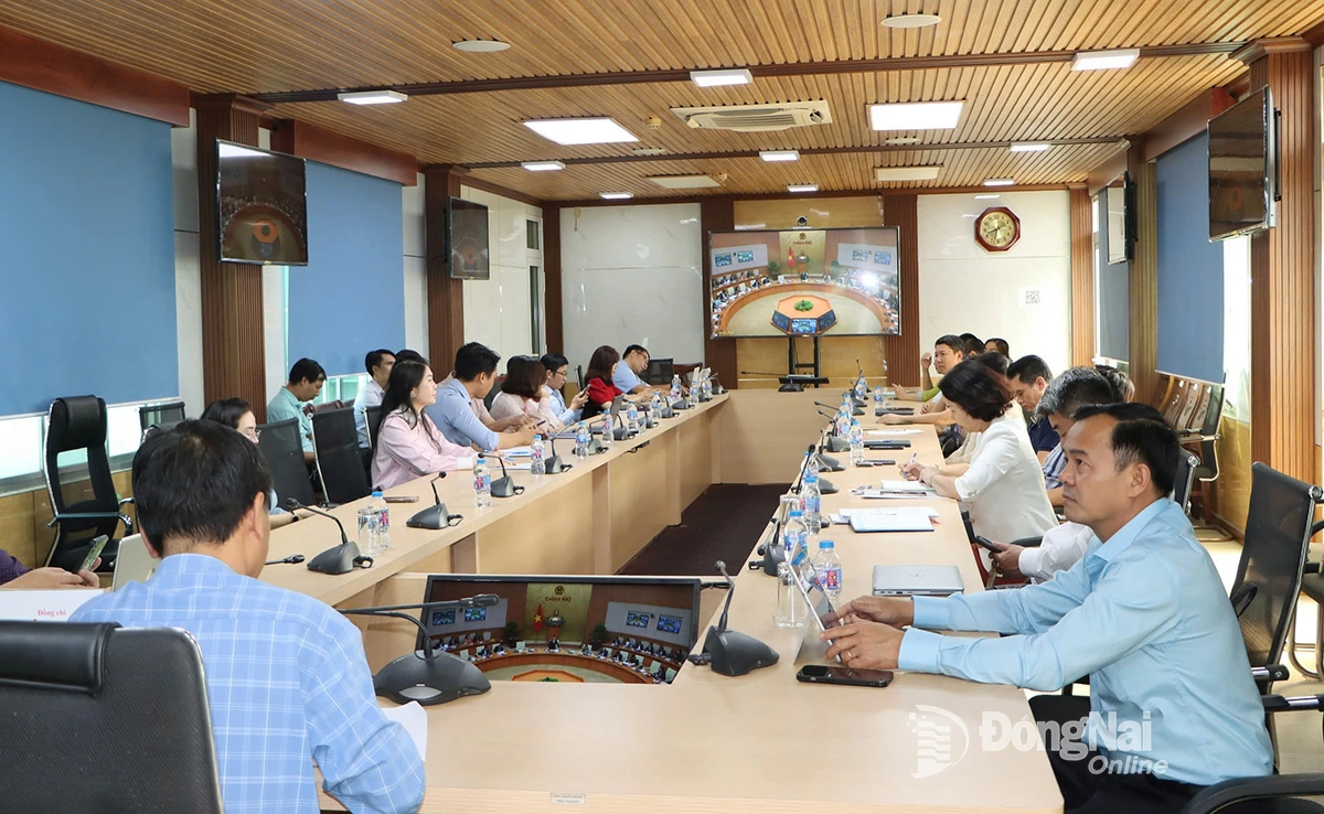 | Đại diện Ban Chỉ đạo Tổng điều tra nông thôn, nông nghiệp năm 2025 tỉnh Đồng Nai và các sở, ngành liên quan tham dự hội nghị tại điểm cầu tỉnh Đồng Nai. Ảnh: Thanh Cảnh |
