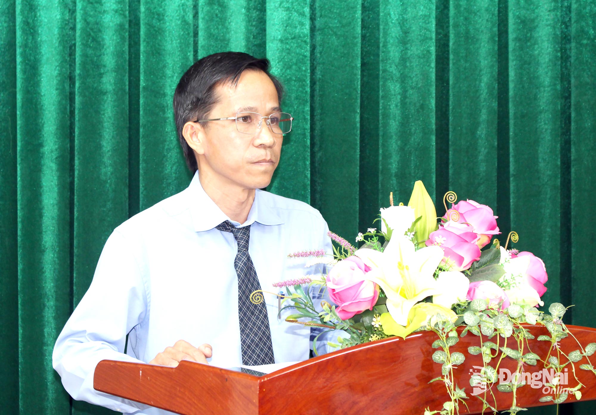 | Ông Lê Đình Thâm, Hiệu trưởng Trường cao đẳng Kỹ thuật - Công nghệ Đồng Nai phát biểu nhận nhiệm vụ. Ảnh: Hồ Thảo |