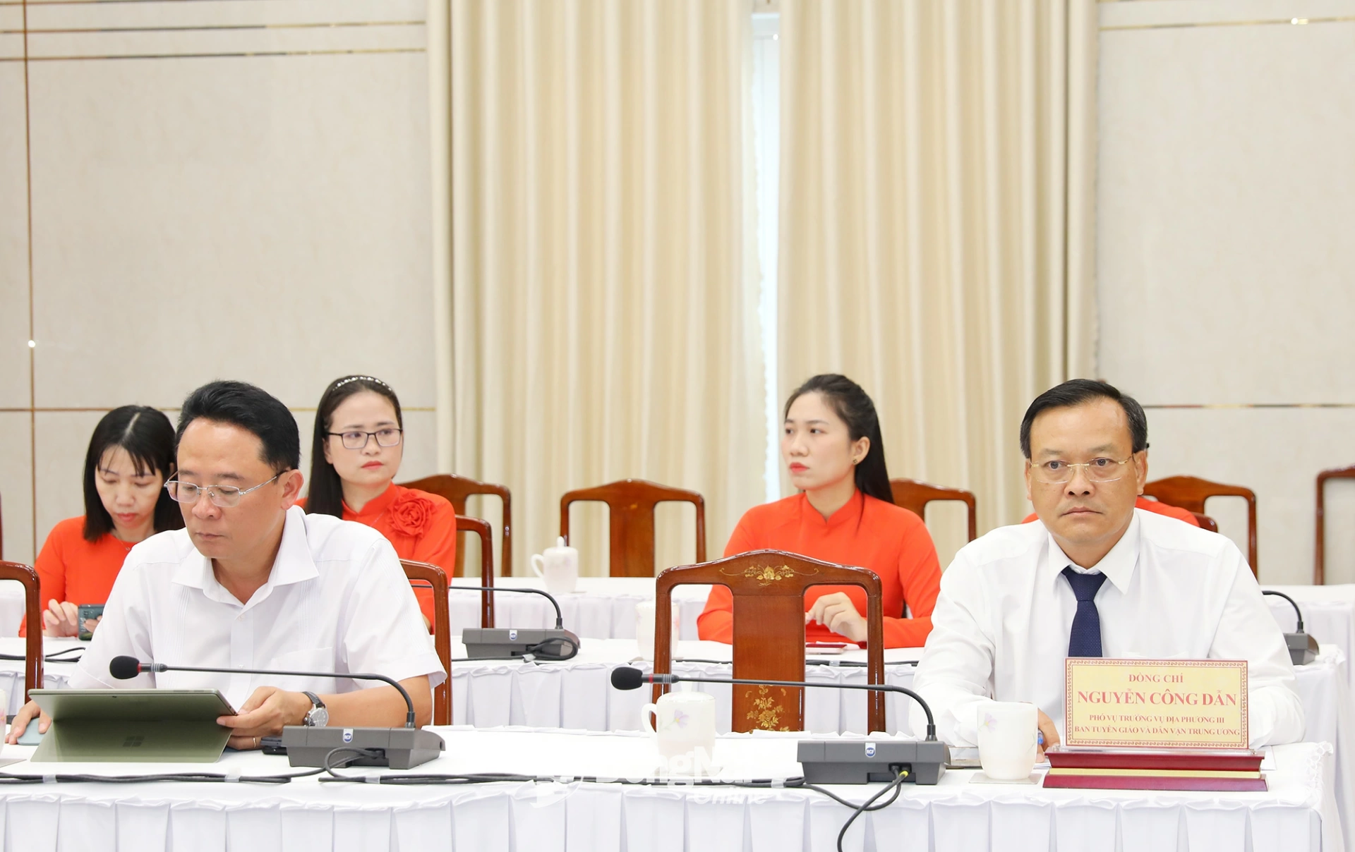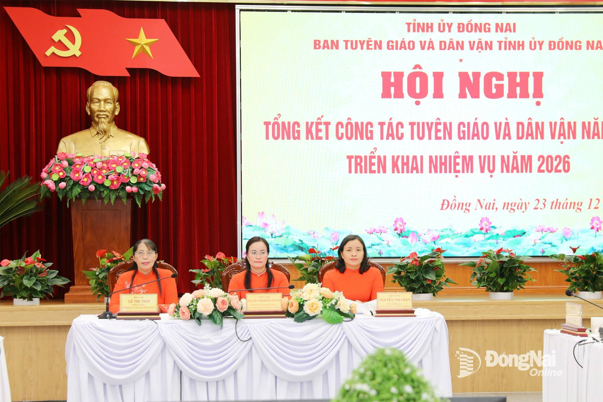 Tỉnh ủy viên, Phó Trưởng ban Thường trực phụ trách Ban Tuyên giáo và Dân vận Tỉnh ủy Nguyễn Thị Hồng Trang; Tỉnh ủy viên, Phó Trưởng ban Tuyên giáo và Dân vận Tỉnh ủy Lê Thị Thái và Phó Trưởng ban Tuyên giáo và Dân vận Tỉnh ủy Nguyễn Thị Loan chủ trì hội nghị.