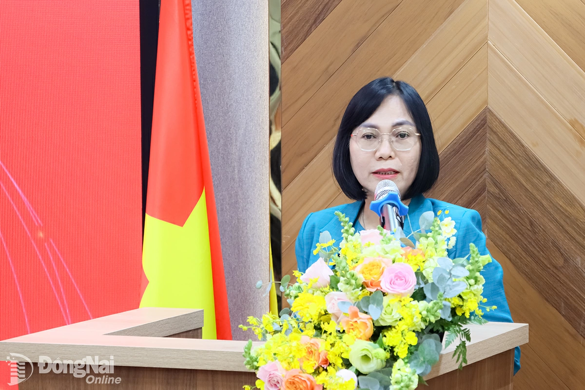 | Tỉnh ủy viên, Phó Chủ tịch UBND tỉnh Đồng Nai Nguyễn Thị Hoàng cam kết tỉnh Đồng Nai luôn đồng hành cùng doanh nghiệp; đồng thời xem thành công của doanh nghiệp chính là thành công của tỉnh. Ảnh: Xuân Túc |