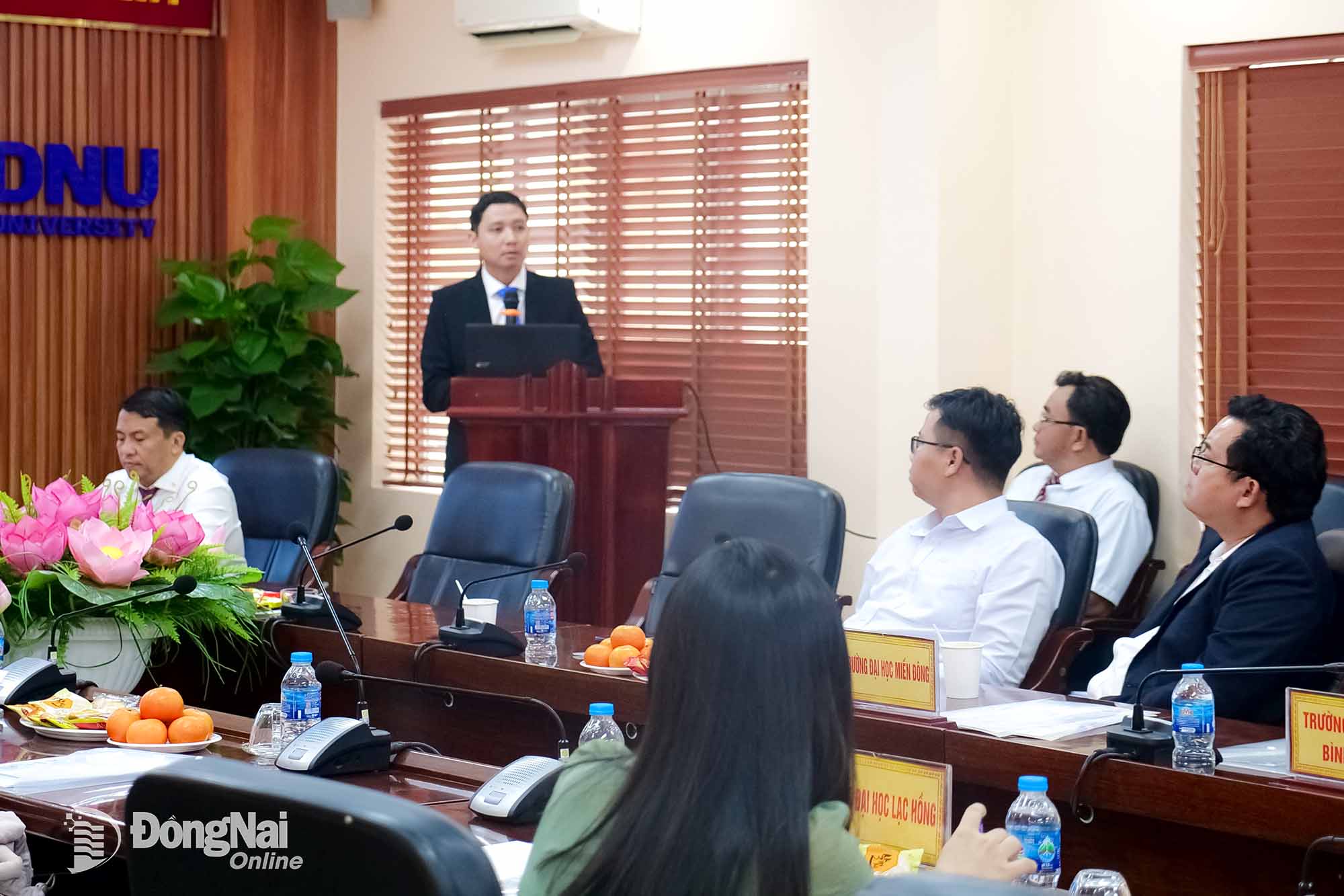 | Đại diện Trường đại học Lạc Hồng báo cáo tham luận tại tọa đàm. Ảnh: Hạnh Dung |