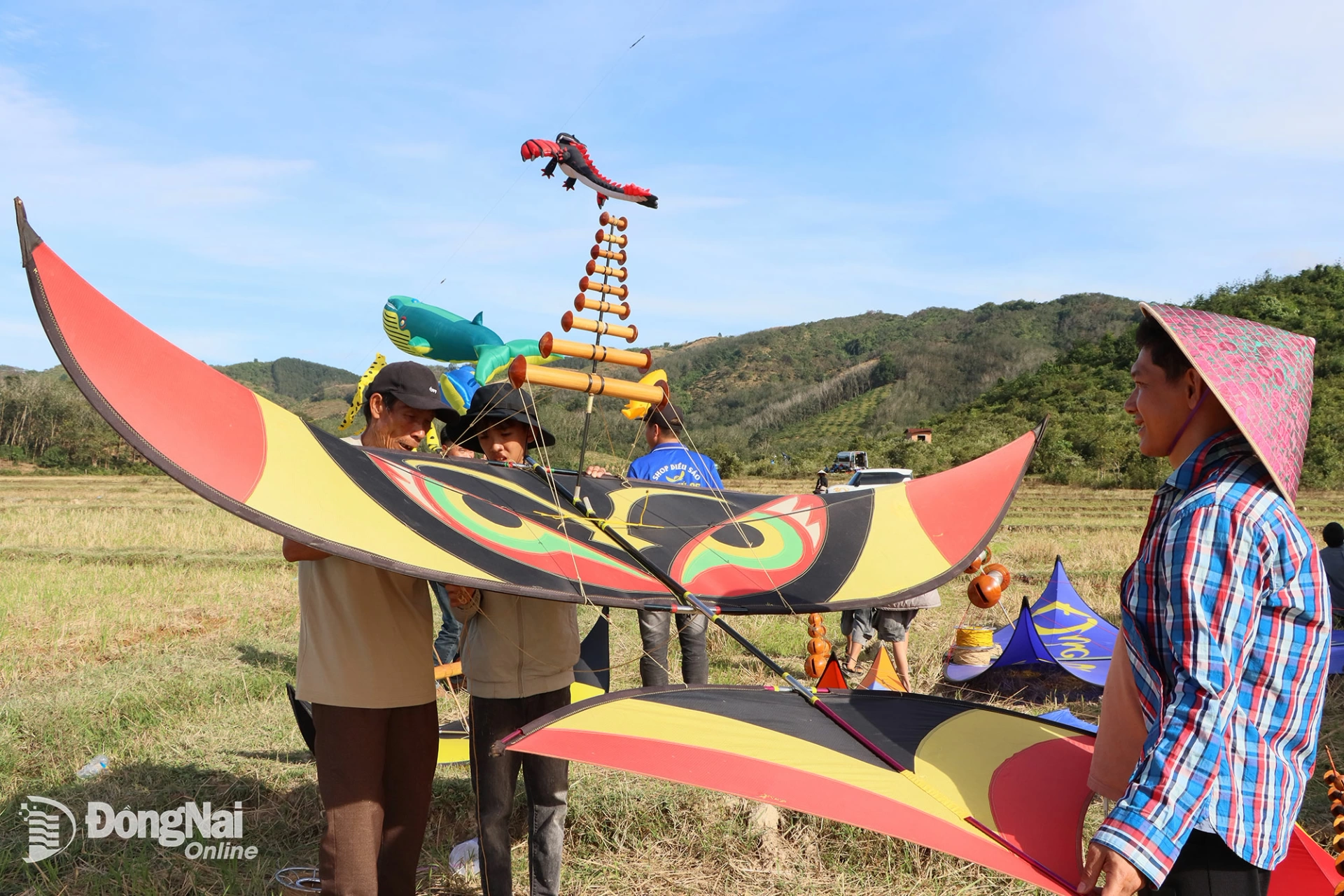 | Các đội kiểm tra lần cuối các cánh diều trước khi tham gia cuộc thi. Ảnh: Xuân Túc |