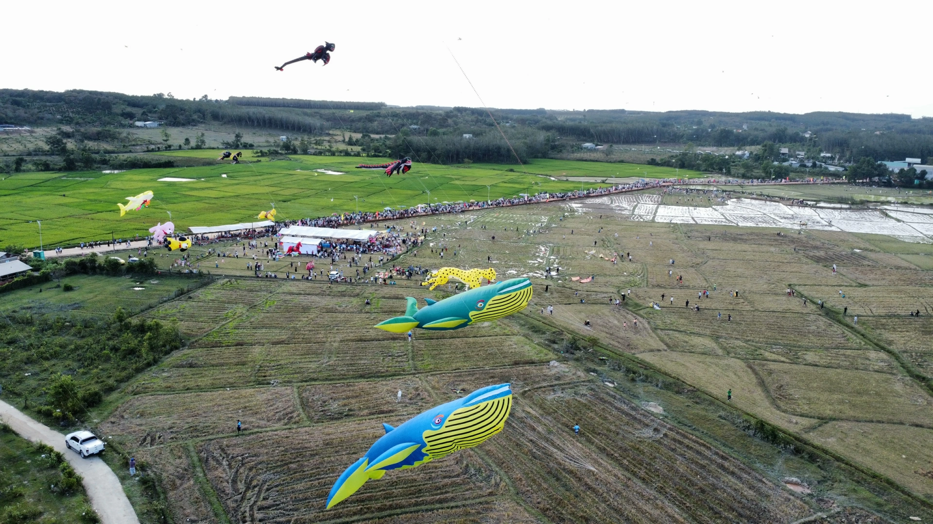 | Lễ hội Diều sáo nghệ thuật Bù Đăng nhìn từ trên cao. Ảnh Xuân Túc |