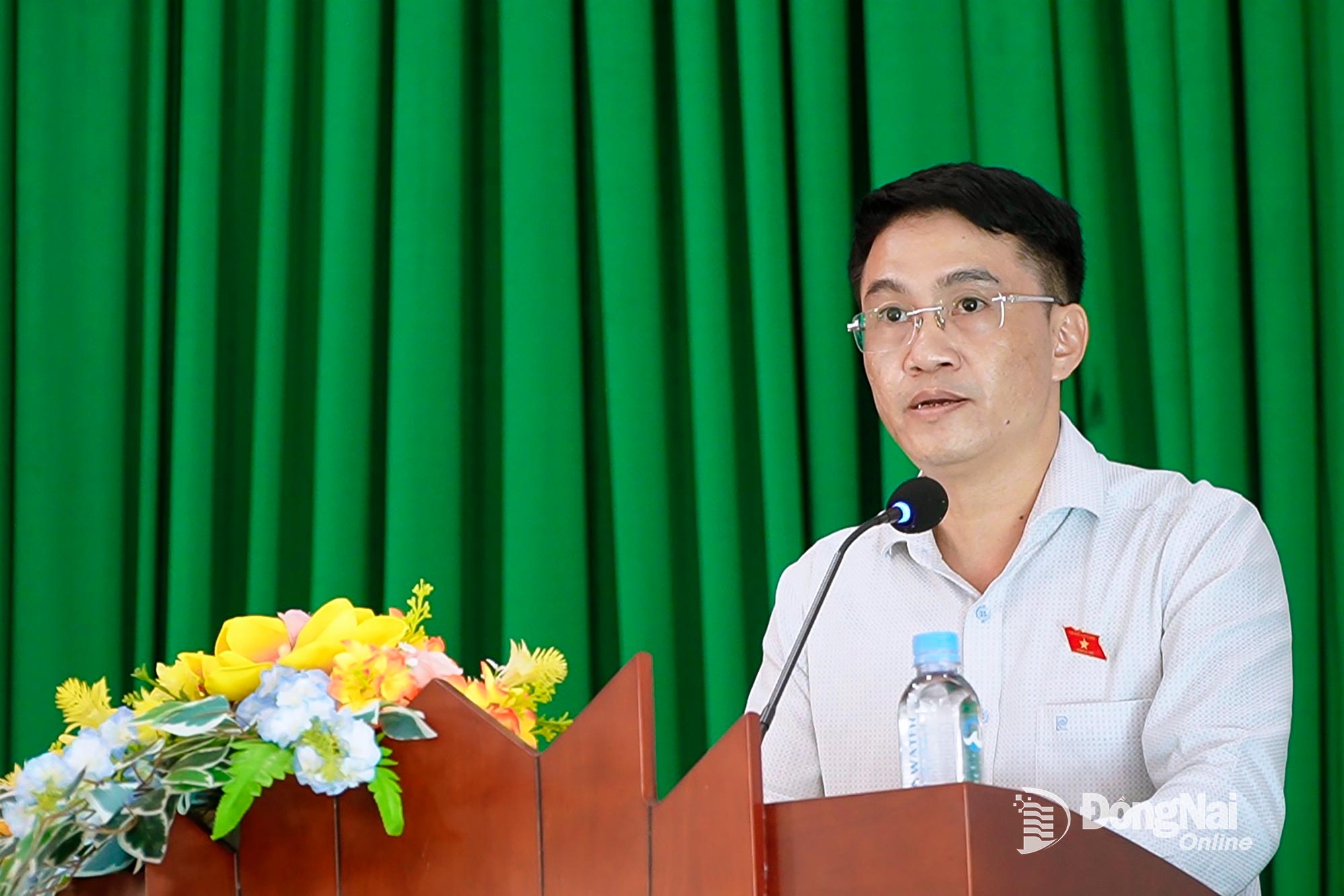| Đại biểu Quốc hội tỉnh Đồng Nai Nguyễn Tuấn Anh phát biểu tại buổi tiếp xúc. Ảnh: Trương Hiện |