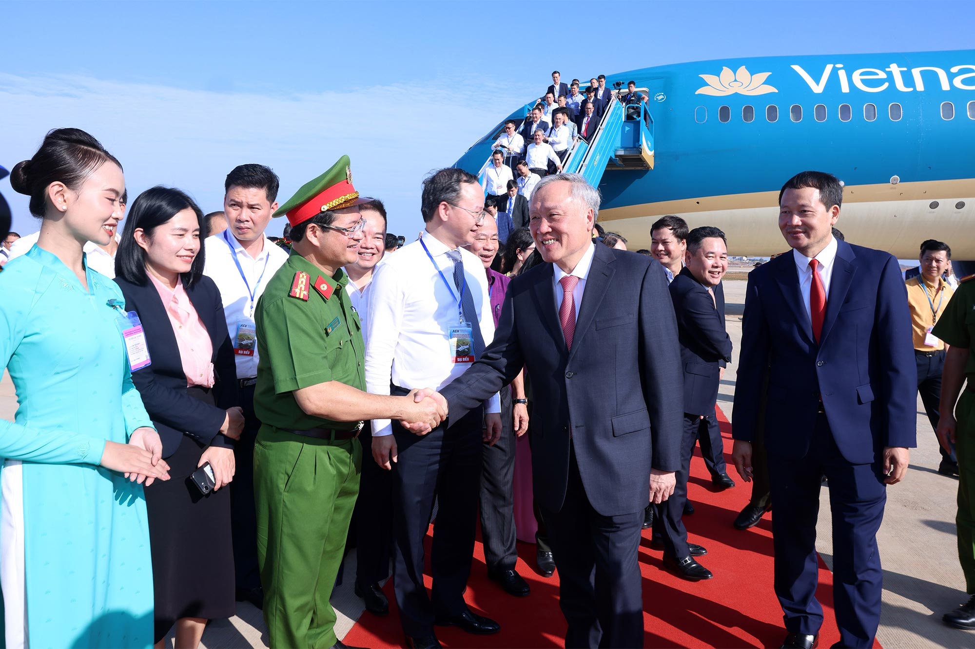 | Ủy viên Bộ Chính trị, Phó Thủ tướng Thường trực Chính phủ Nguyễn Hòa Bình cùng các vị khách trên chuyến bay đặc biệt đầu tiên hạ cánh xuống Sân bay quốc tế Long Thành, sáng 19-12. Ảnh: TTXVN |