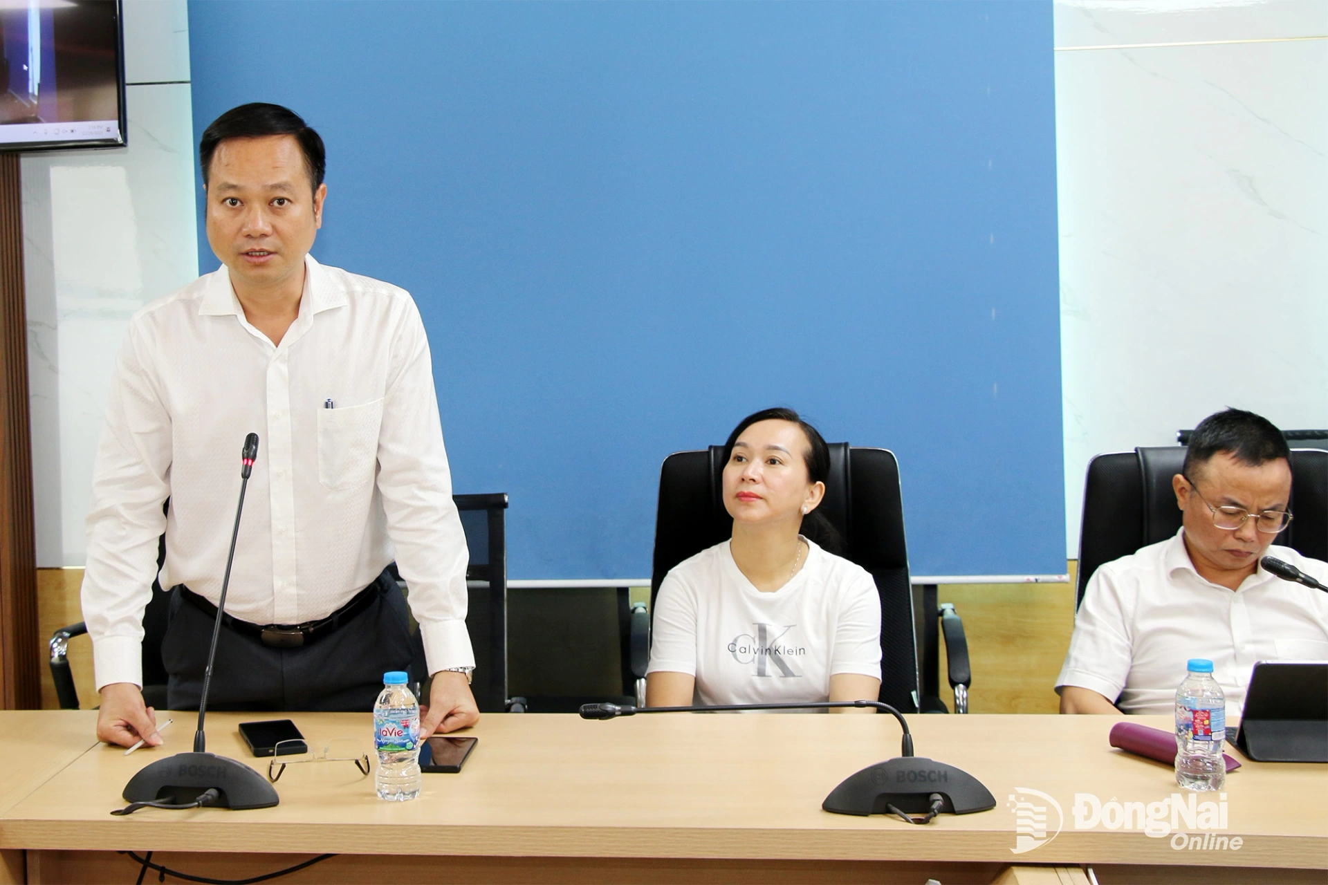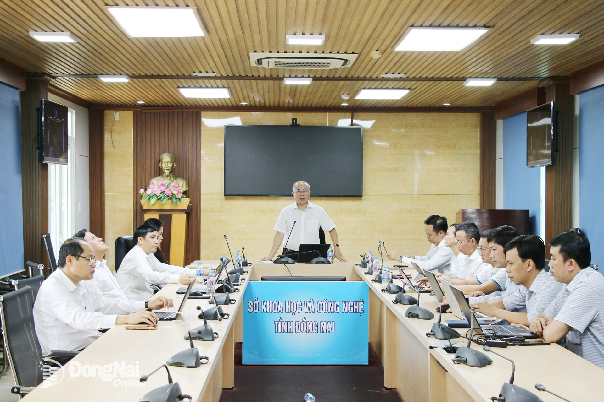 | Phó Giám đốc Sở Khoa học và Công nghệ tỉnh Đồng Nai Nguyễn Minh Quang phát biểu tại buổi làm việc. Ảnh: Hải Quân |