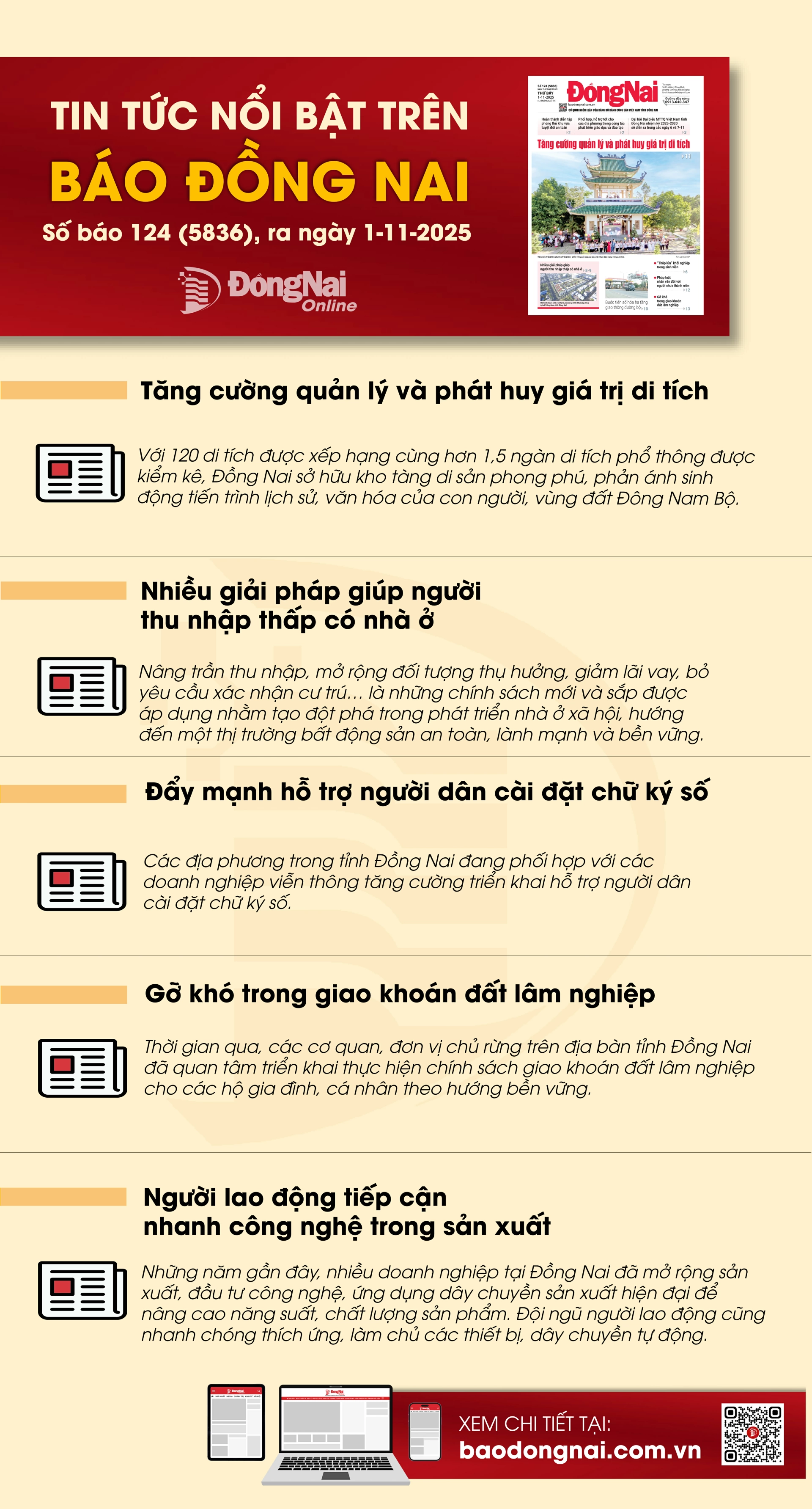Tin tức nổi bật trên Báo Đồng Nai hôm nay 1-11-2025