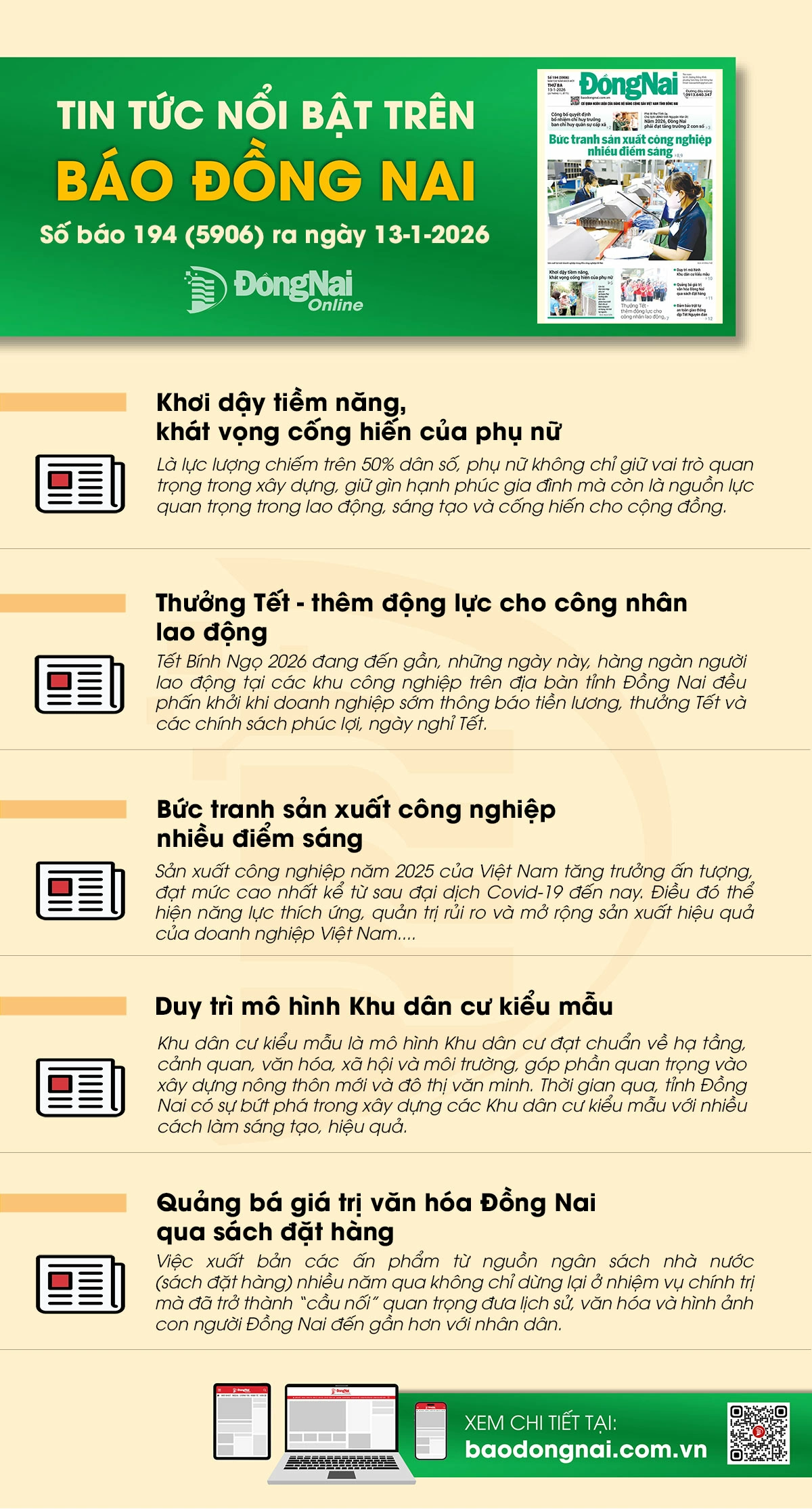 Tin tức nổi bật trên Báo Đồng Nai hôm nay 13-1-2026