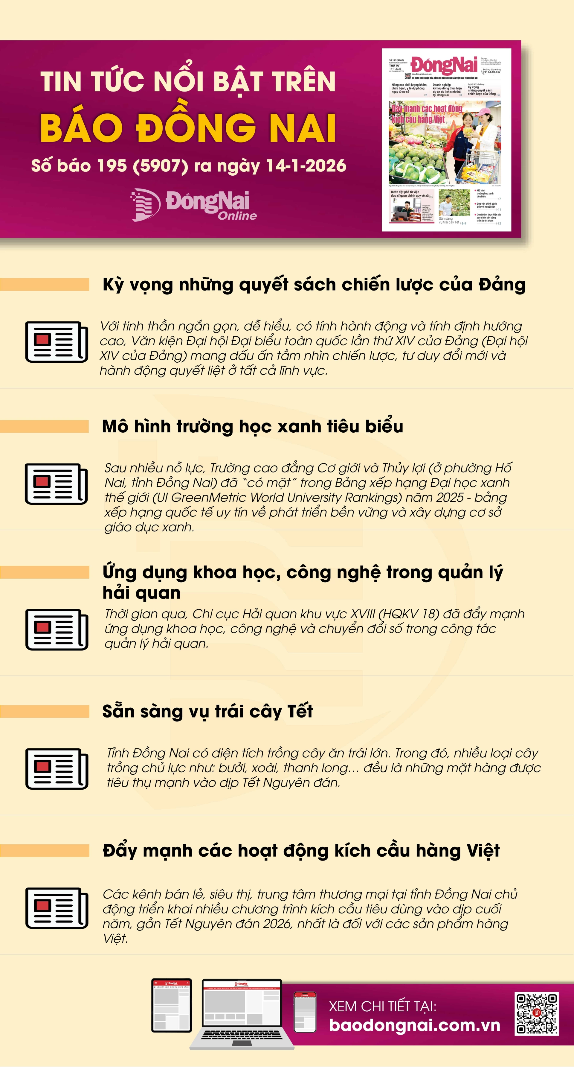 Tin tức nổi bật trên Báo Đồng Nai hôm nay 14-1-2026