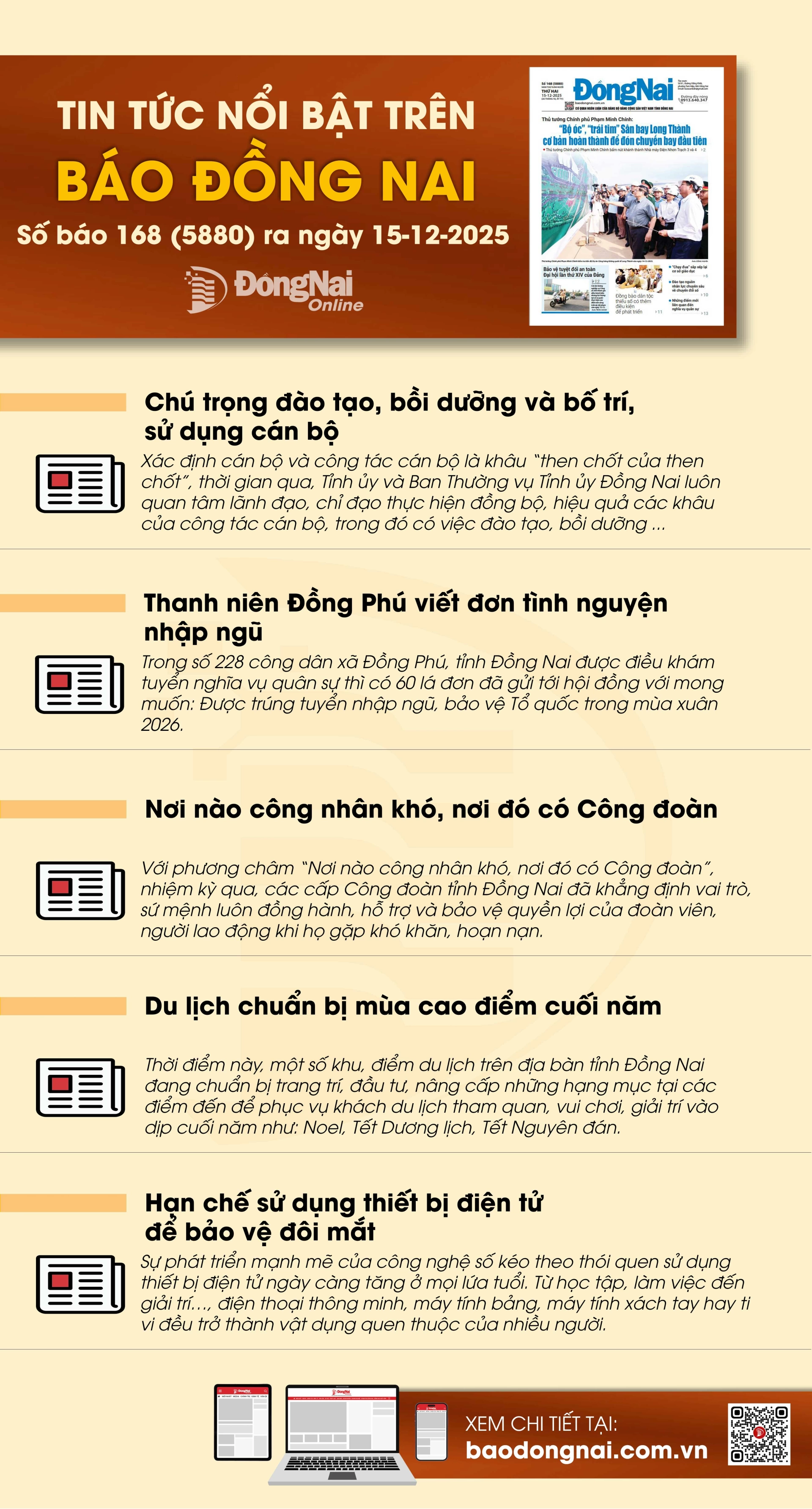 * Tin tức nổi bật trên Báo Đồng Nai hôm nay 15-12-2025: