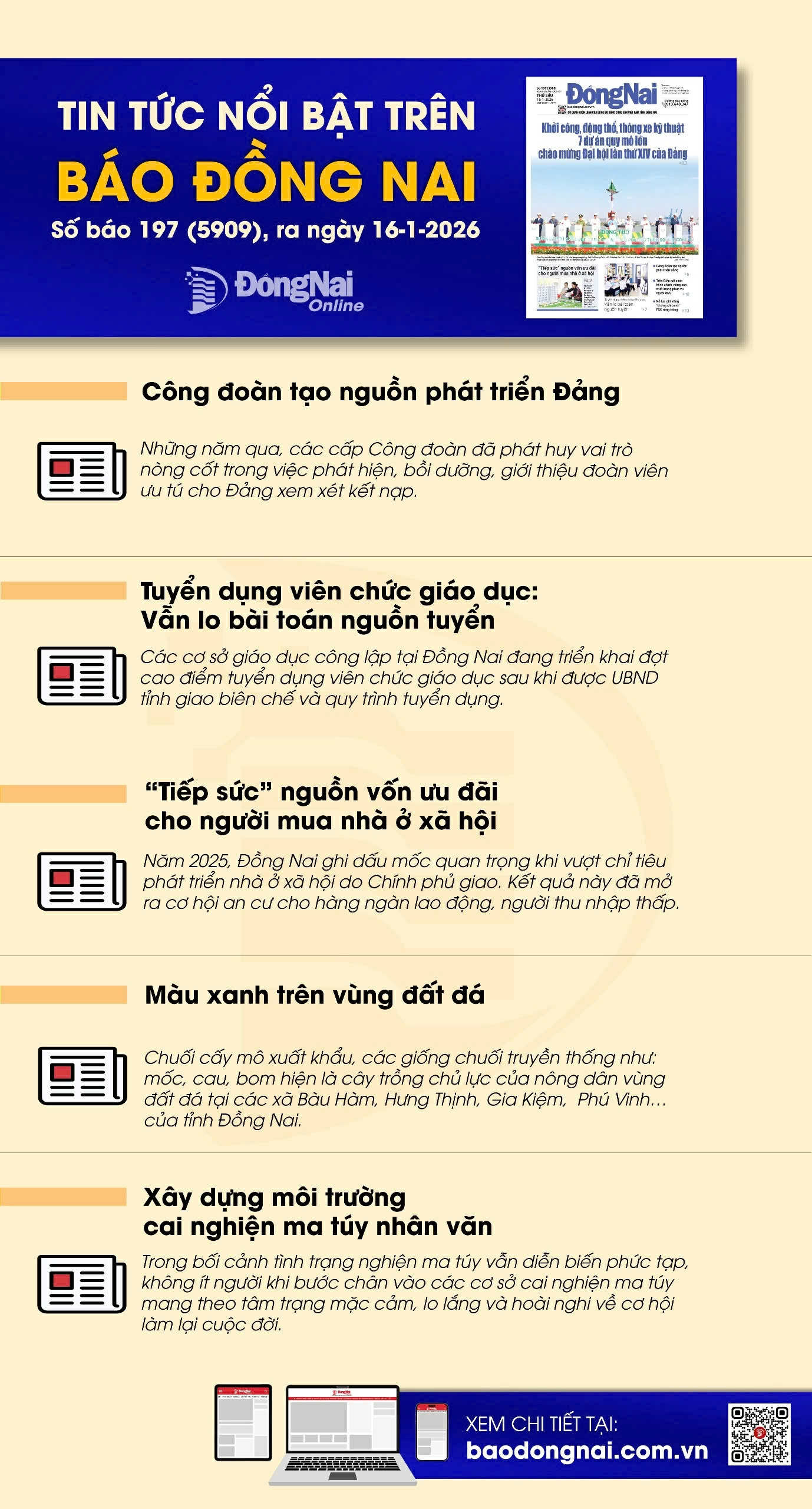 Tin tức nổi bật trên Báo Đồng Nai hôm nay 16-1-2026
