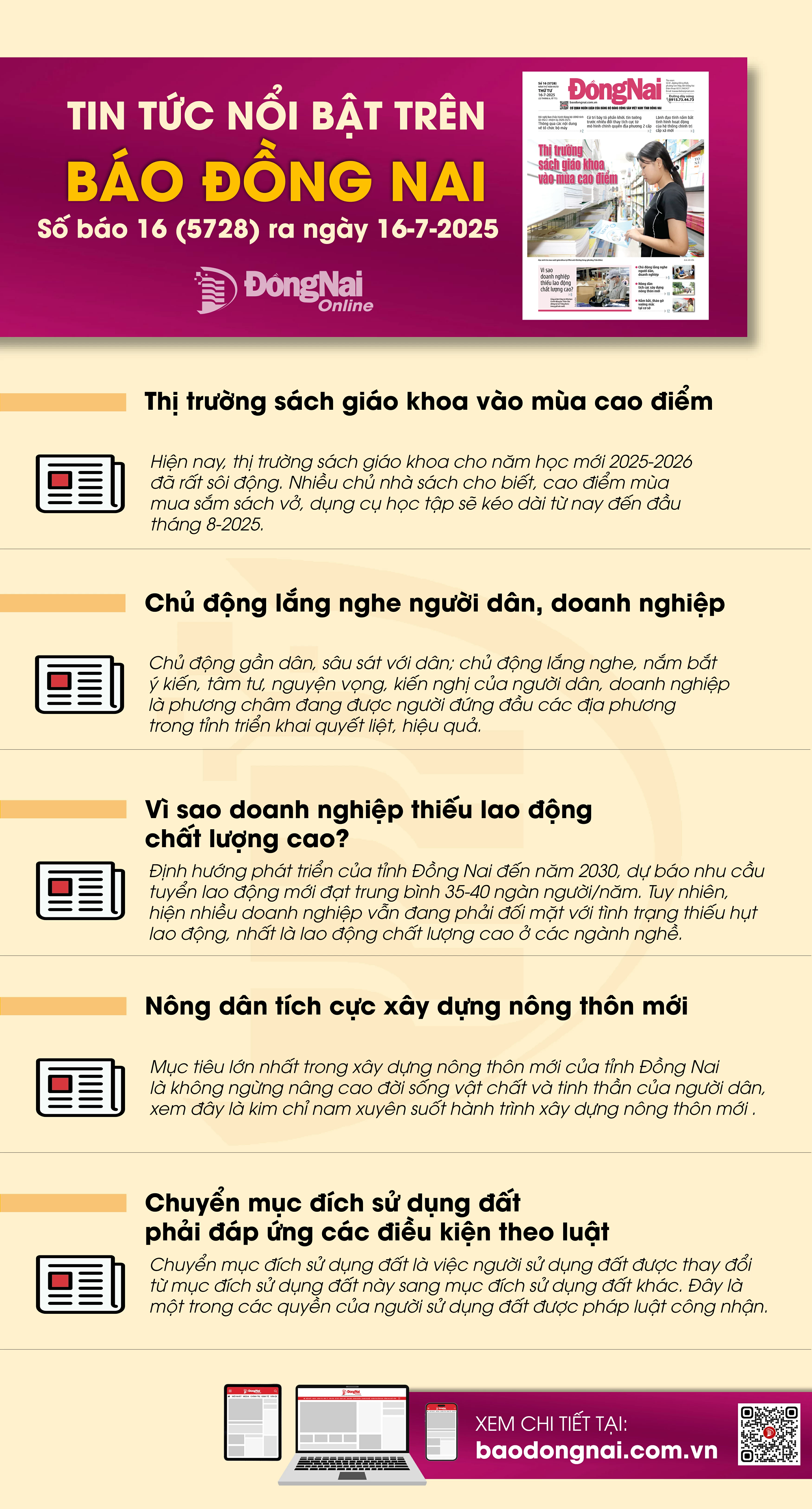 Tin tức nổi bật trên Báo Đồng Nai hôm nay 16-7-2025