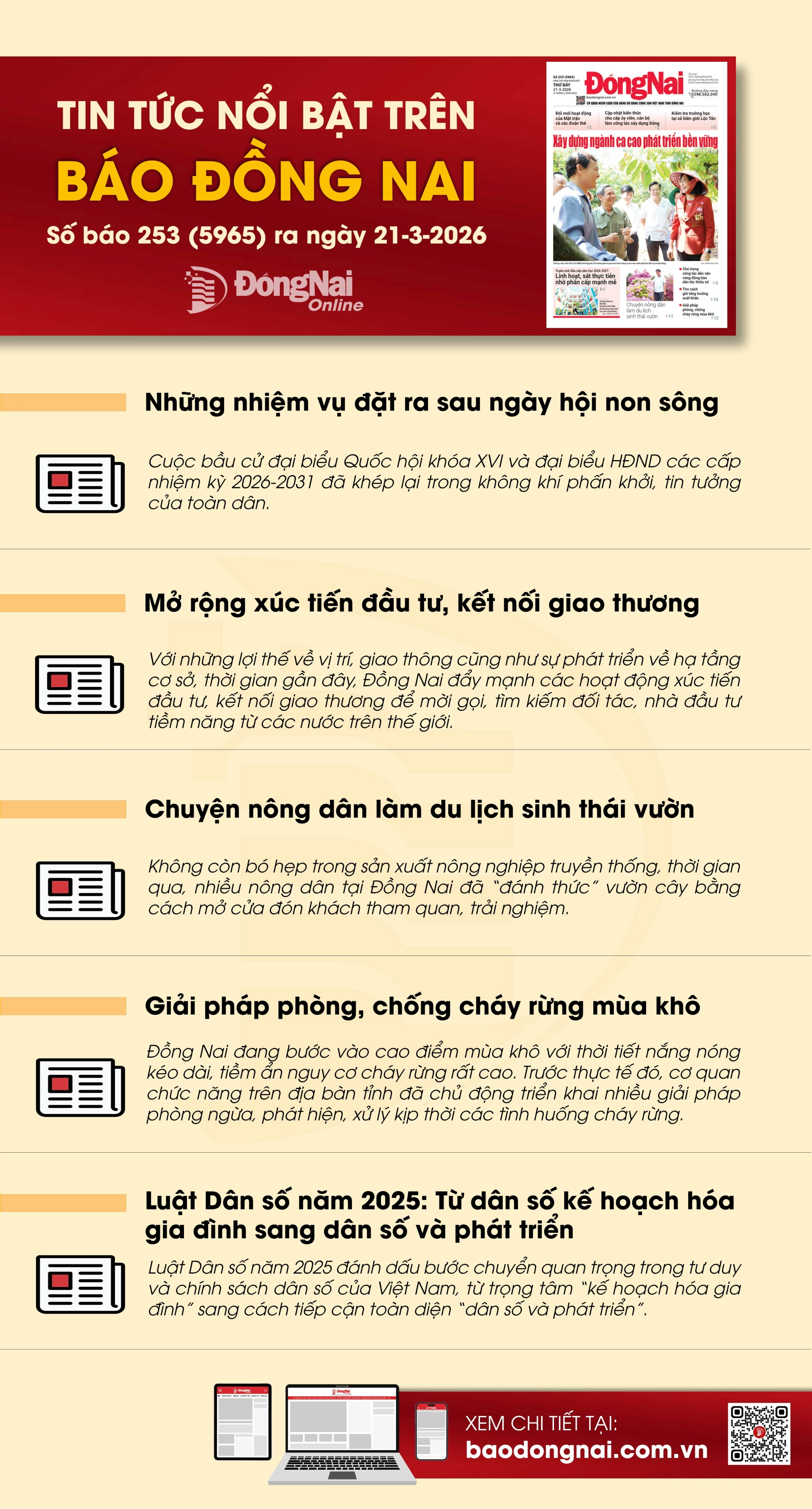 Tin tức nổi bật trên Báo Đồng Nai hôm nay 21-3-2026