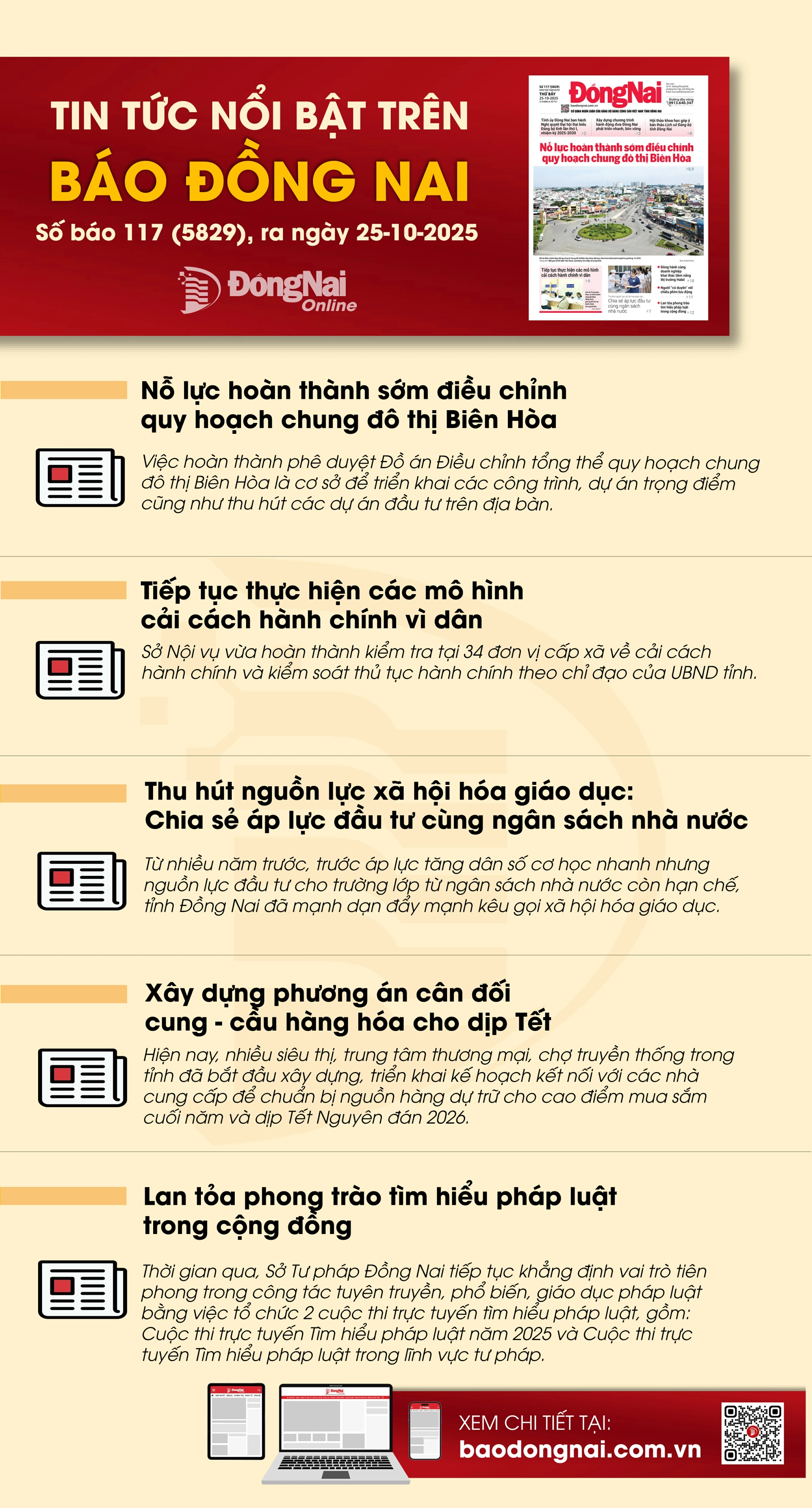 Tin tức nổi bật trên Báo Đồng Nai hôm nay 25-10-2025