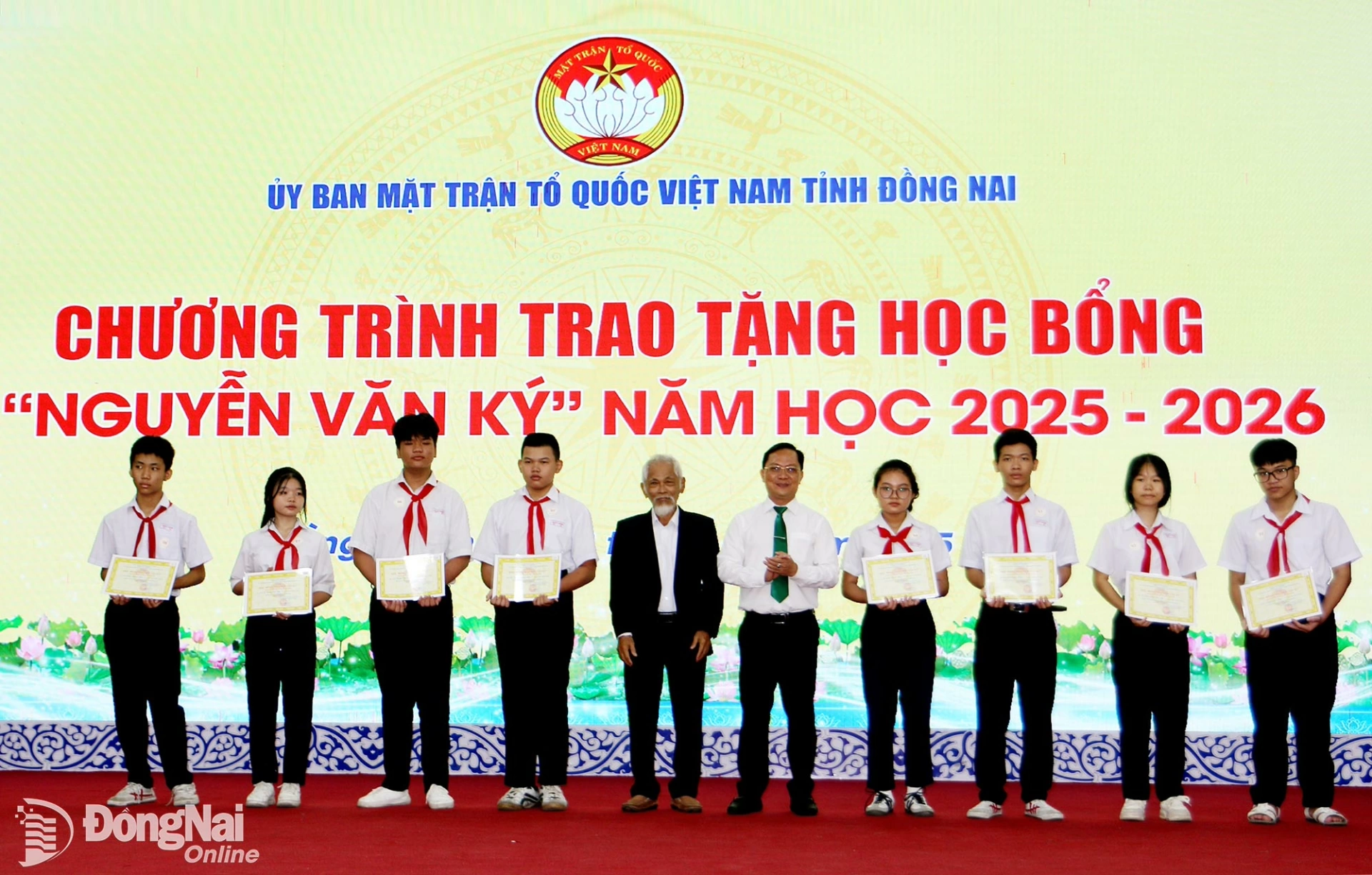 Ngày 28-12, Ban Thường trực Ủy ban MTTQ Việt Nam tỉnh Đồng Nai tổ chức Chương trình trao học bổng “Nguyễn Văn Ký” và học bổng “Chắp cánh ước mơ” năm học 2025-2026 cho các em học sinh, sinh viên có hoàn cảnh khó khăn trên địa bàn tỉnh.