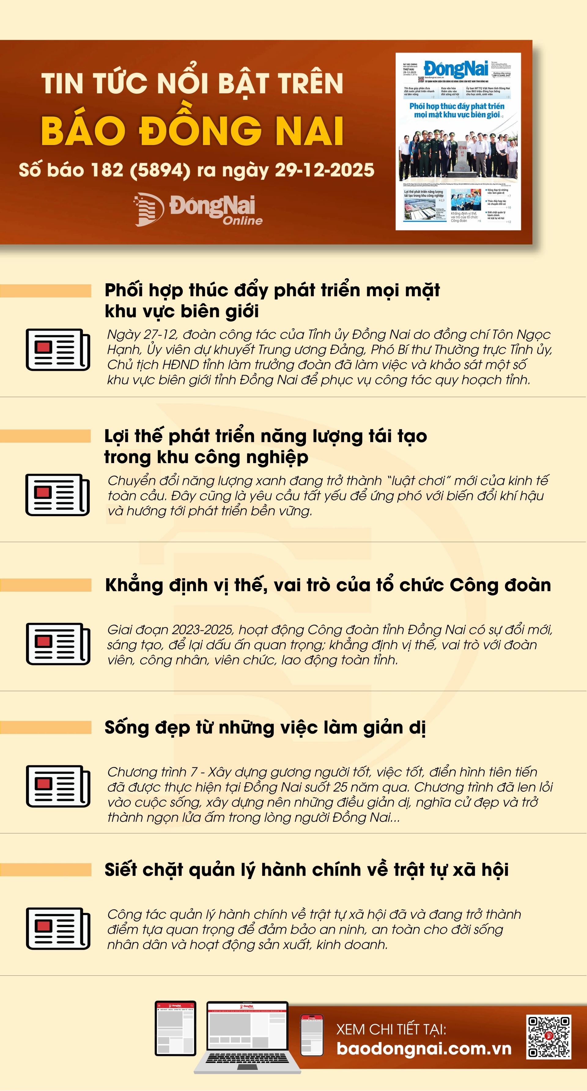 Tin tức nổi bật trên Báo Đồng Nai hôm nay 29-12-2025