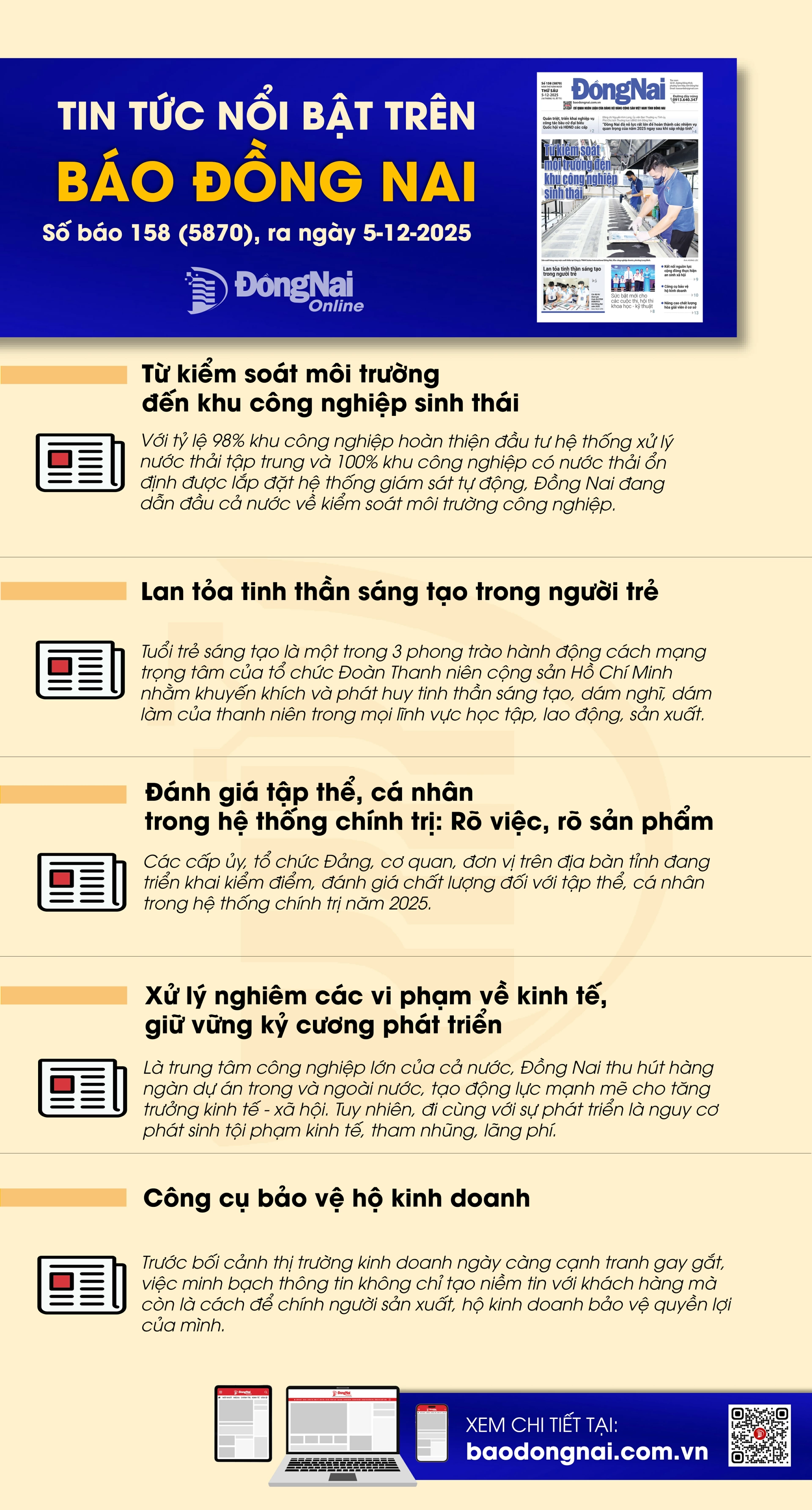 Tin tức nổi bật trên Báo Đồng Nai hôm nay 5-12-2025