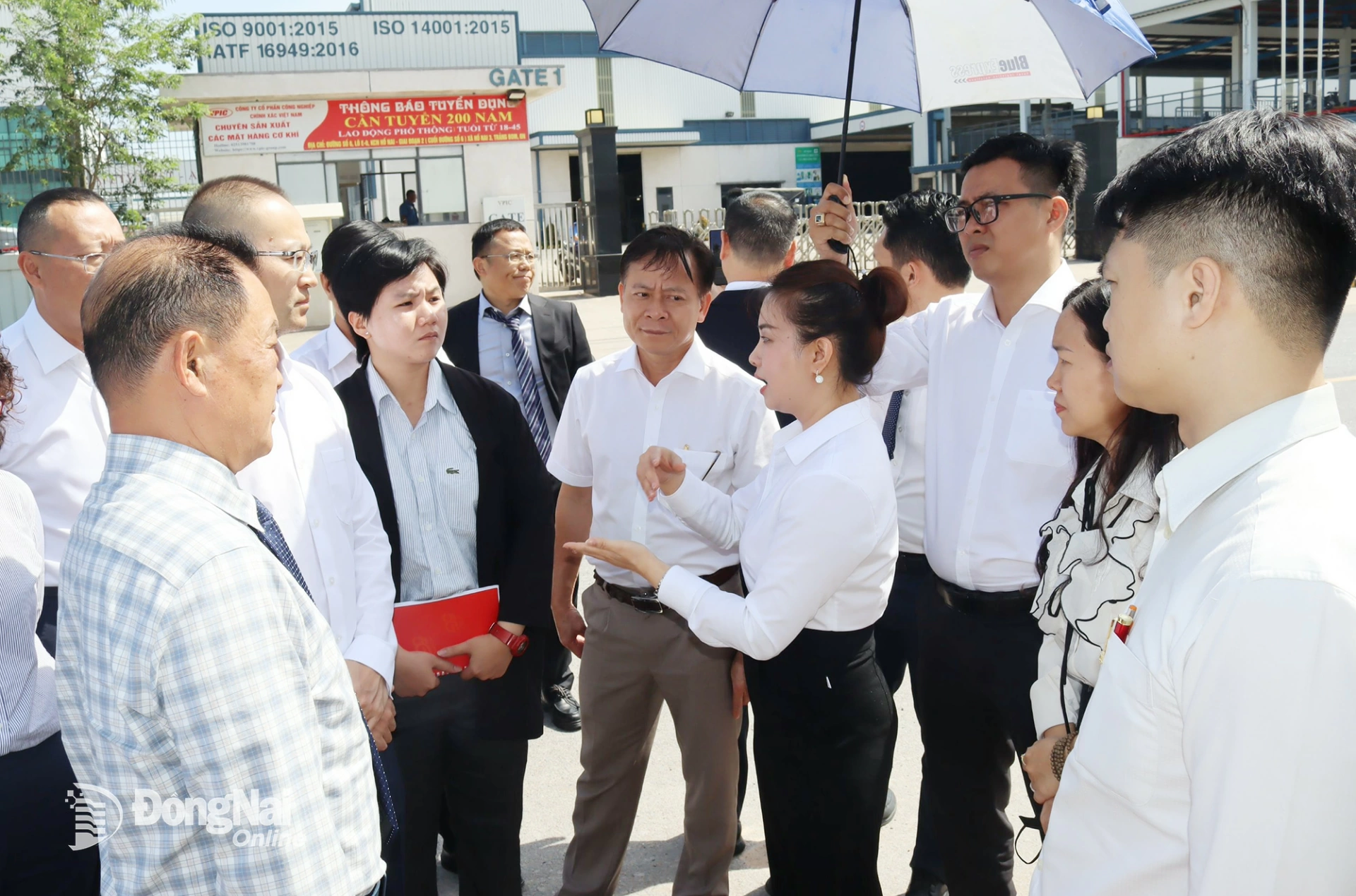 | Đại diện Công ty cổ phần Khu công nghiệp Hố Nai trao đổi với đoàn công tác. Ảnh: Hoàng Lộc |