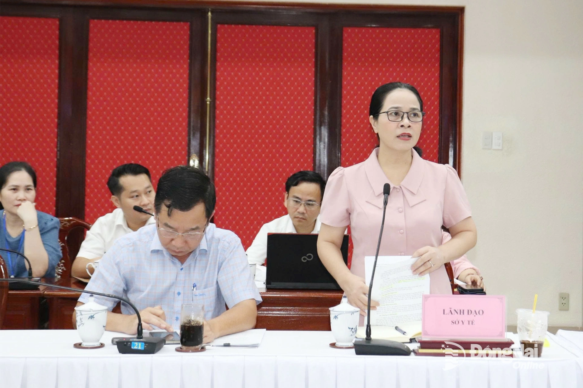 | Lãnh đạo Sở Y tế báo cáo về tiến độ thực hiện đề án sắp xếp các trạm y tế. Ảnh: Bích Nhàn |
