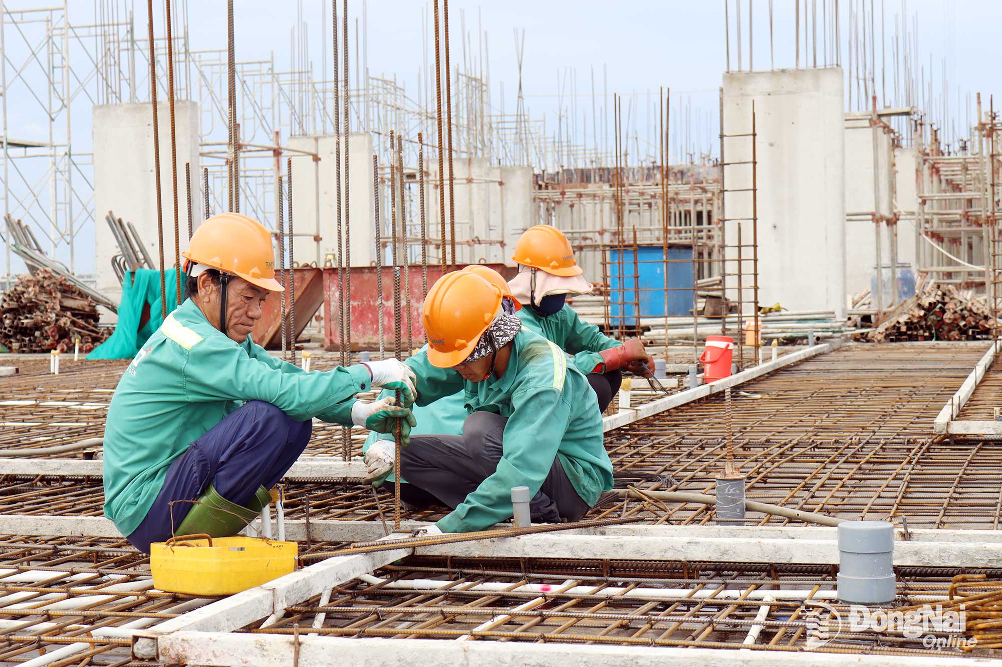 | Thi công xây dựng dự án nhà ở xã hội tại xã Long Thành. Ảnh: Hoàng Lộc |