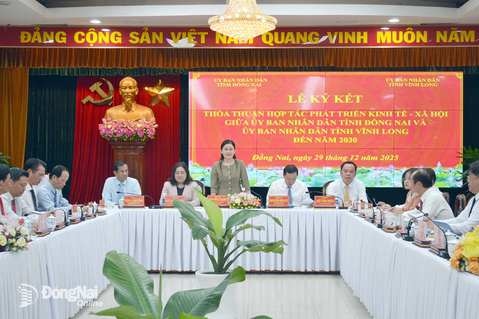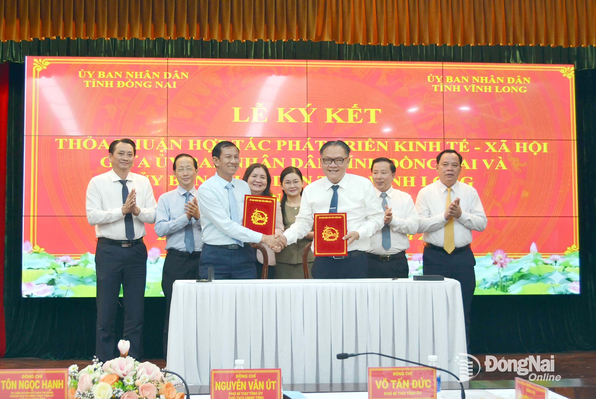 Phát biểu chỉ đạo tại lễ ký kết, đồng chí Tôn Ngọc Hạnh, Ủy viên dự khuyết Trung ương Đảng, Phó Bí thư Thường trực Tỉnh ủy, Chủ tịch HĐND tỉnh Đồng Nai và đồng chí Hồ Thị Hoàng Yến, Phó Bí thư Thường trực Tỉnh ủy Vĩnh Long đề nghị sau hội nghị ký kết này, Đảng ủy UBND 2 tỉnh, lãnh đạo UBND 2 tỉnh chỉ đạo các sở, ngành của mỗi tỉnh ký kết hợp tác cụ thể với nhau trên từng lĩnh vực, thực hiện hiệu quả các nội dung trong thỏa thuận hợp tác mà UBND 2 tỉnh đã ký kết, qua đó để có những kết quả cụ thể trong hợp tác, cùng nhau thi đua vì sự phát triển mạnh mẽ chung giữa 2 tỉnh, chăm lo đời sống nhân dân ngày càng tốt hơn.