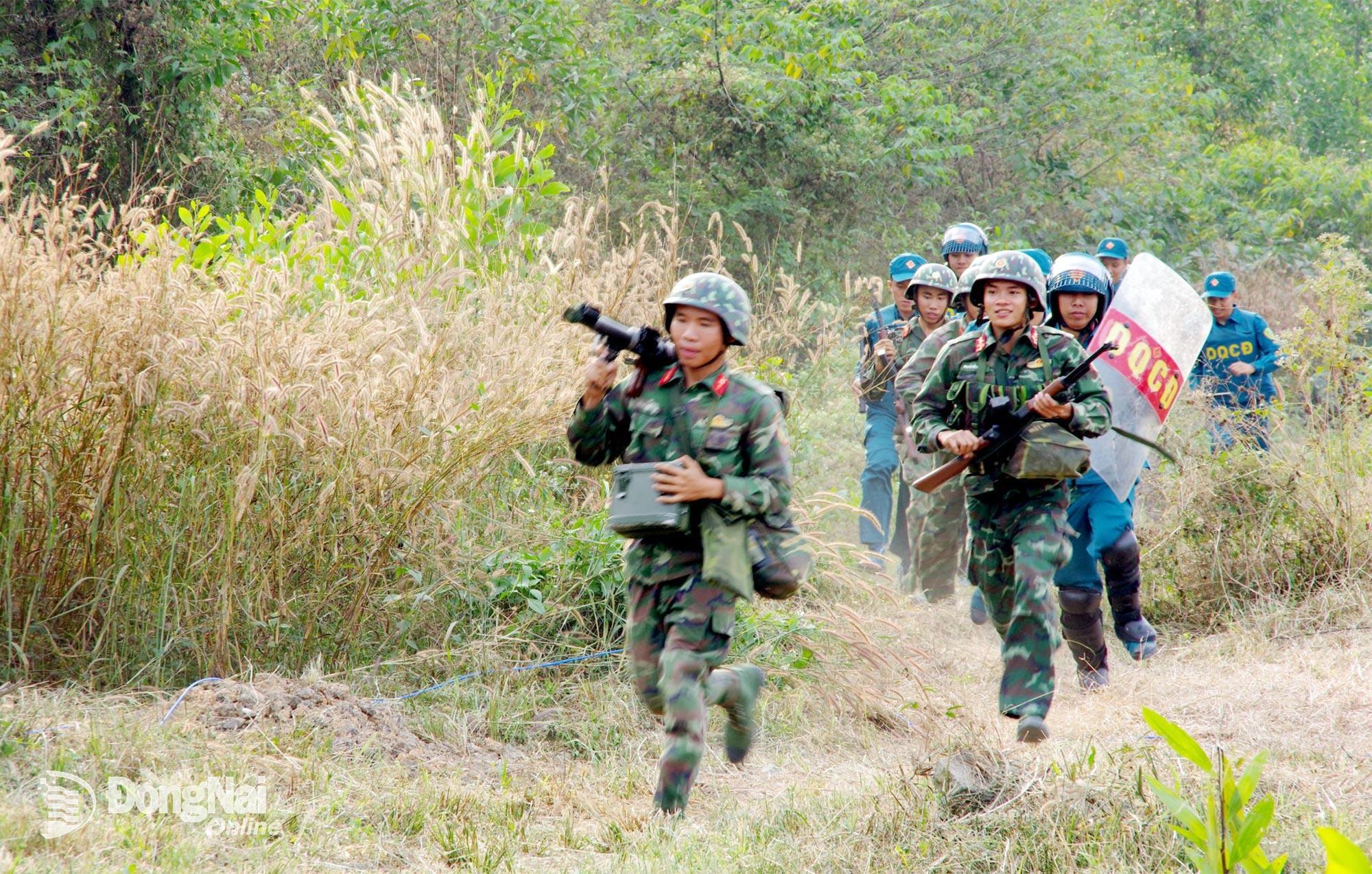 | Cán bộ, chiến sĩ tham gia nội dung kiểm tra báo động. Ảnh: Nguyễn Hùng |
