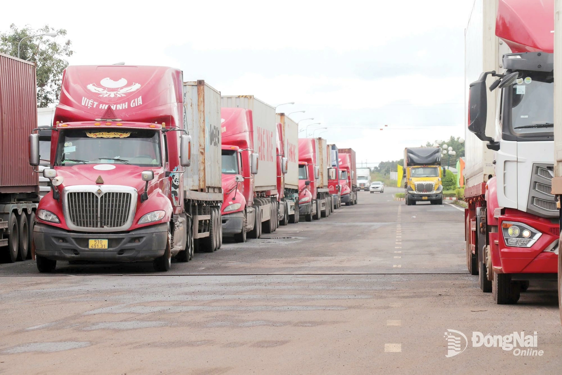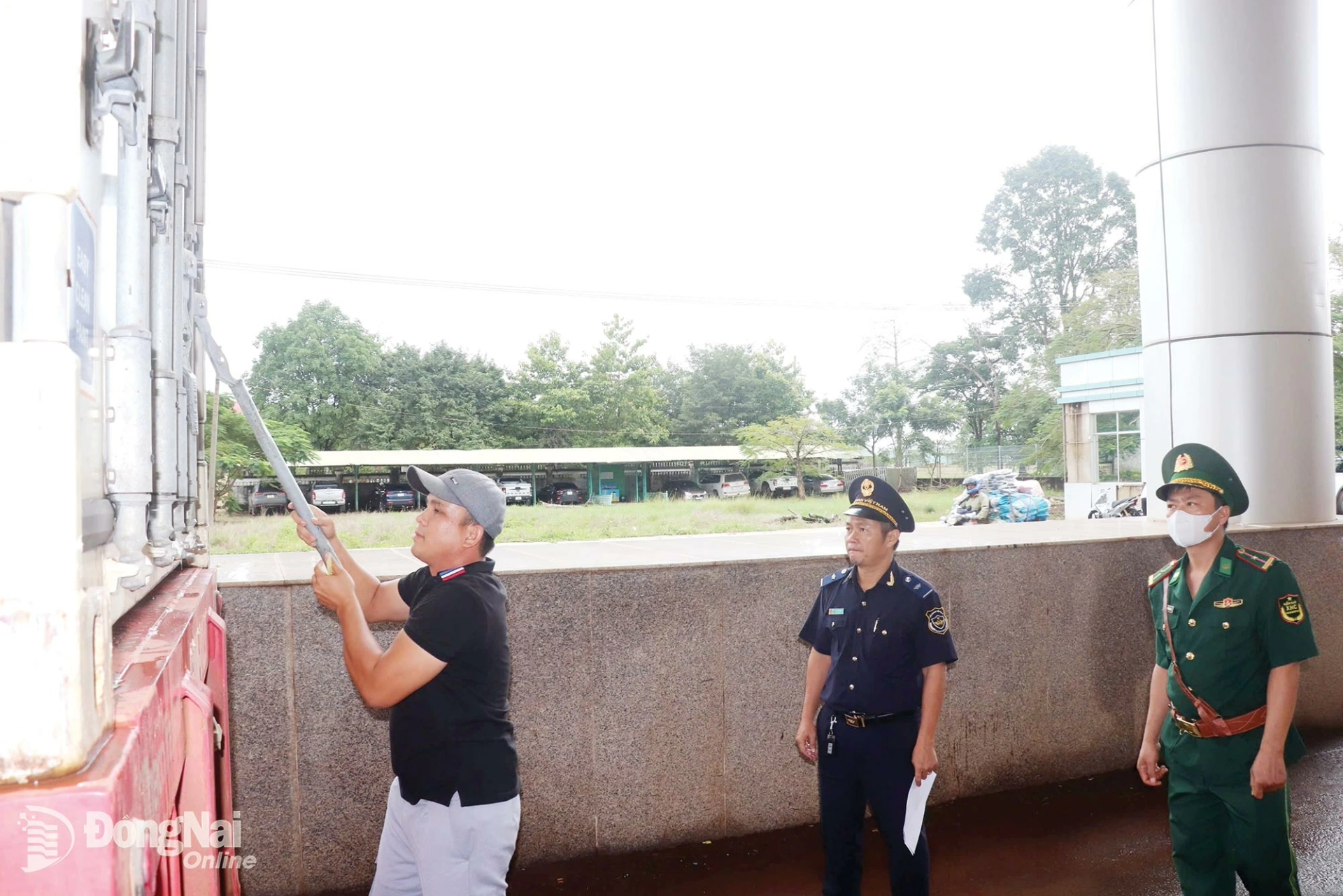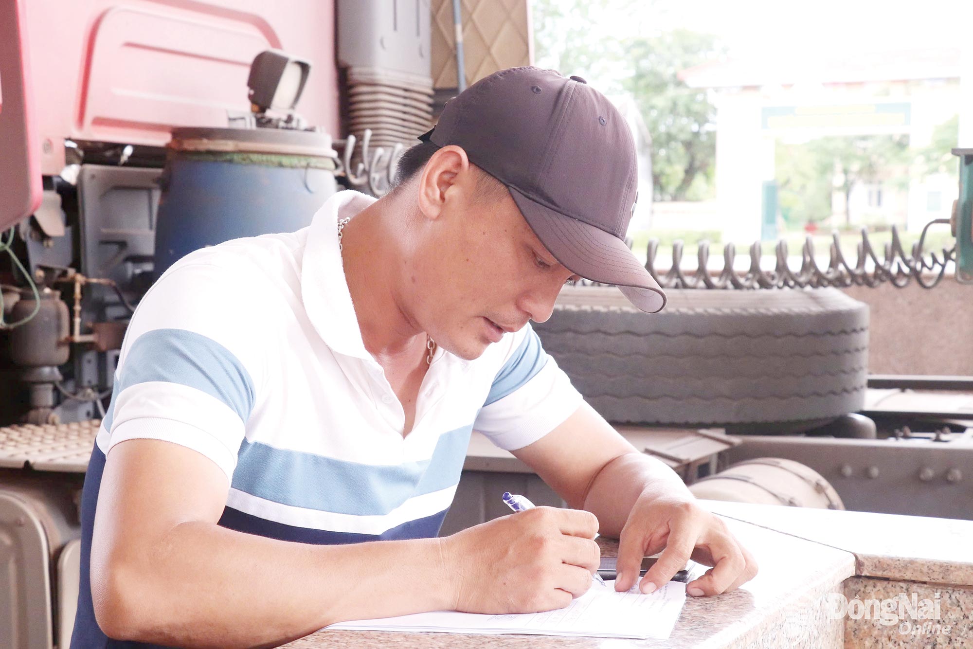 | Một tài xế xe container dừng lại tại trạm kiểm soát để khai báo thủ tục hải quan. Tính từ đầu năm đến ngày 30-9-2025, có hơn 52 ngàn lượt phương tiện vận tải xuất - nhập cảnh qua Cửa khẩu quốc tế Hoa Lư. |