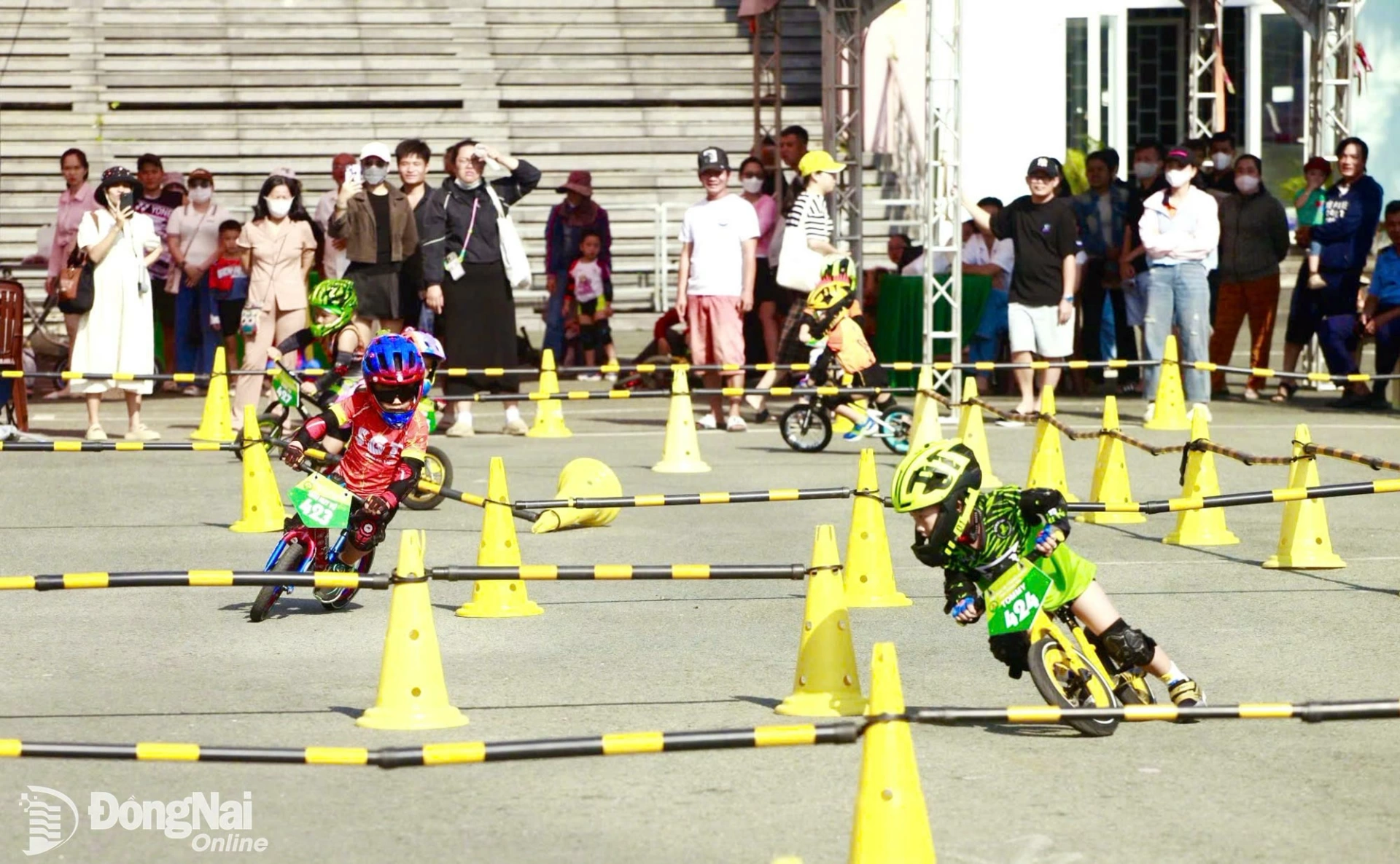 | Hơn 130 vận động viên nhí tham gia Giải đua xe thăng bằng tỉnh Đồng Nai năm 2025. Ảnh: Thủy Tiên |