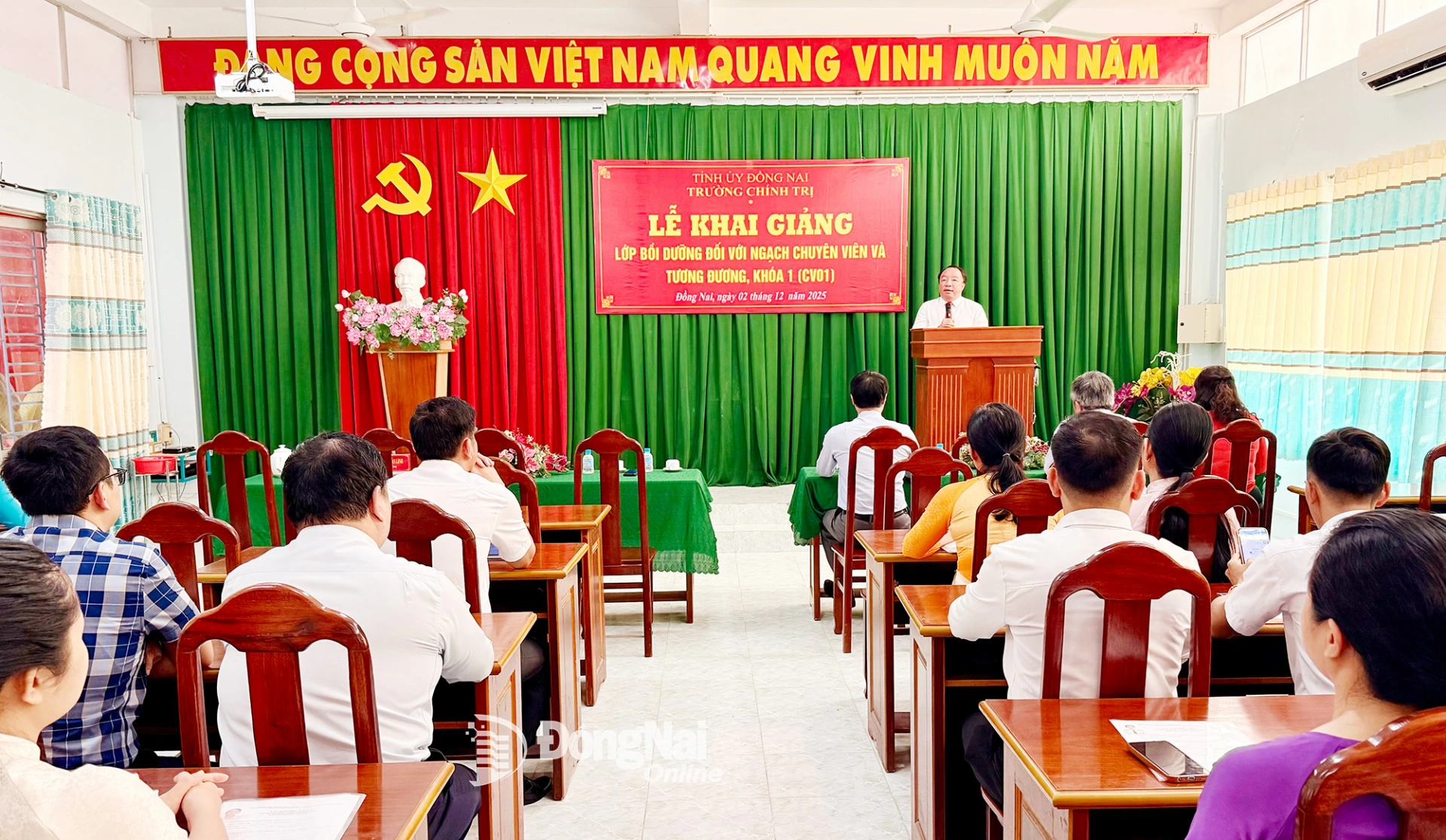 Lớp bồi dưỡng đối với ngạch chuyên viên và tương đương, khóa 1 (CV01) có 51 học viên, đang công tác tại các sở, ngành và các xã trên địa bàn tỉnh. Lớp bồi dưỡng được triển khai theo Quyết định số 1417/QĐ-UBND, ngày 26-9-2025 của UBND tỉnh Đồng Nai về ban hành kế hoạch đào tạo, bồi dưỡng cán bộ, công chức, viên chức năm 2025.