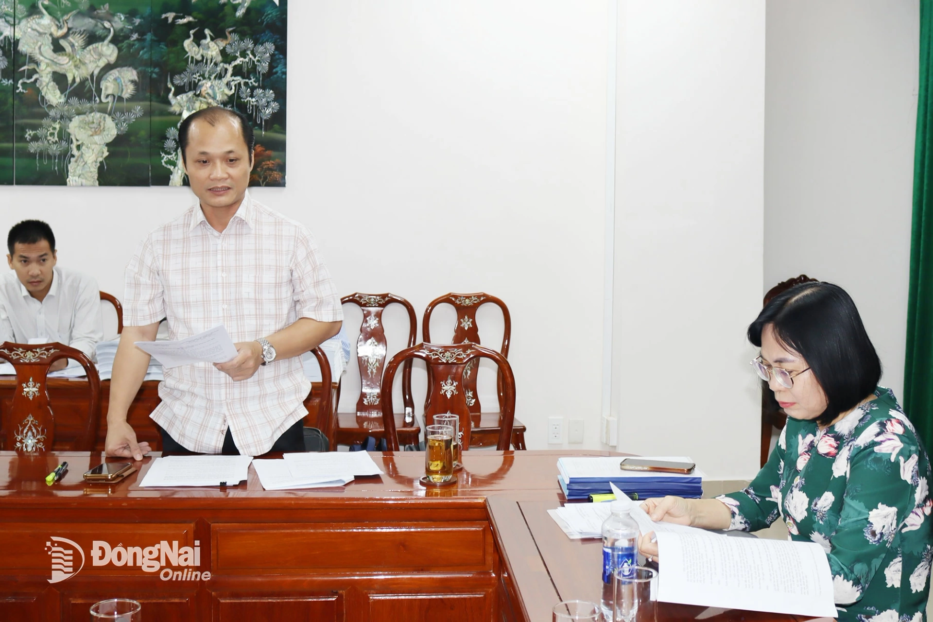 | Tỉnh ủy viên, Giám đốc Sở Nông nghiệp và Môi trường tỉnh Đồng Nai Nguyễn Tuấn Anh báo cáo tại buổi làm việc. Ảnh: Hoàng Lộc |