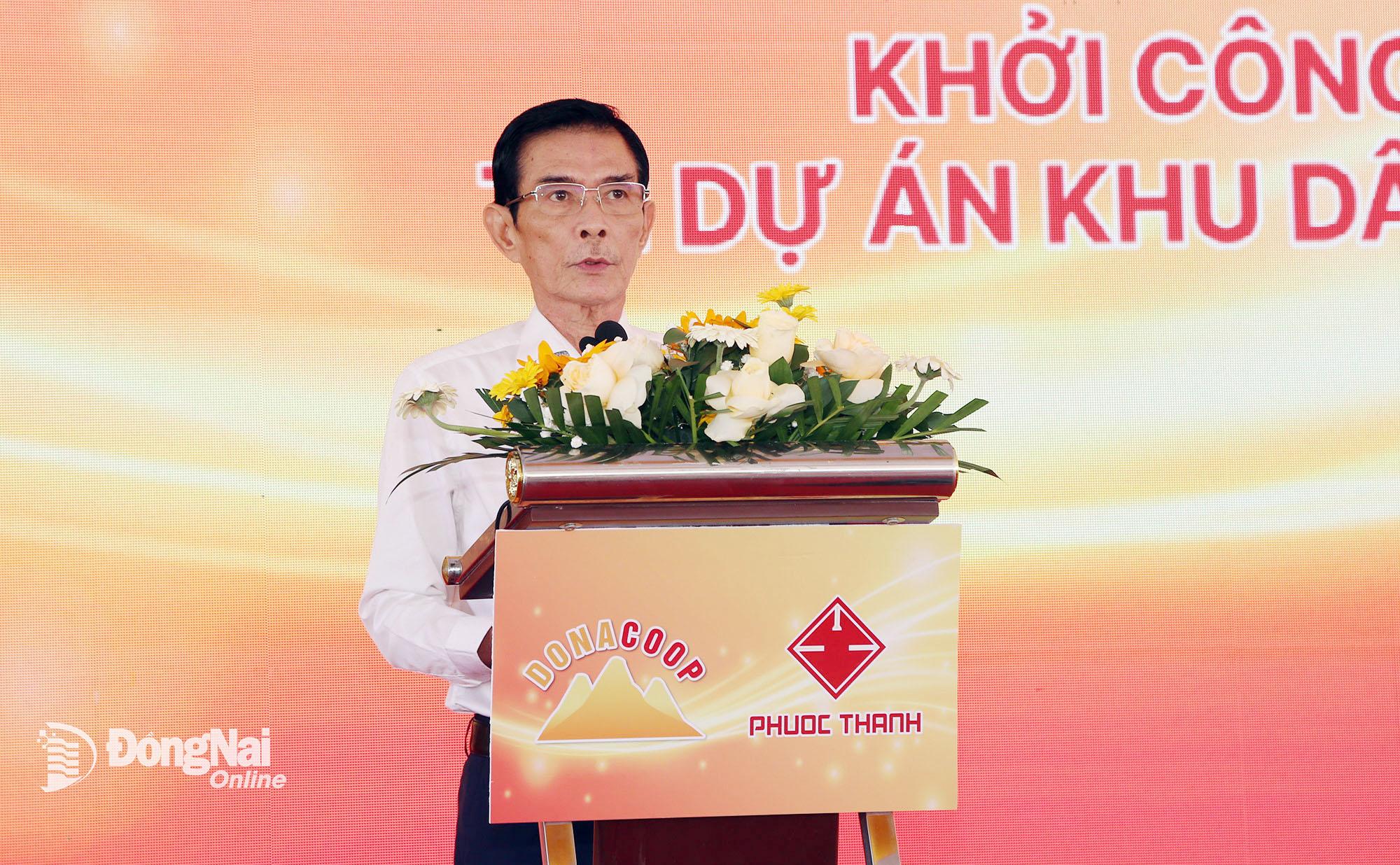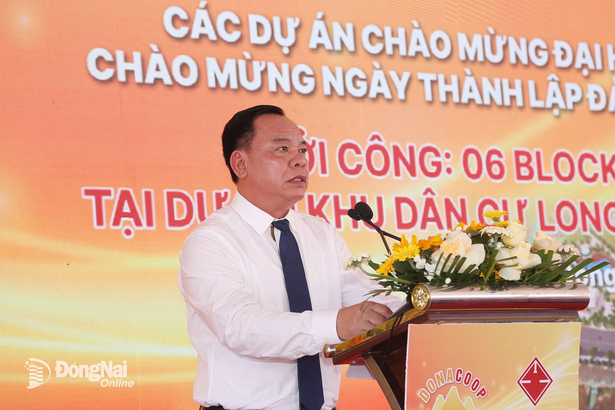| Đồng chí Võ Tấn Đức, Phó Bí thư Tỉnh ủy Đồng Nai phát biểu tại lễ khởi công Dự án Chung cư nhà ở xã hội tại phường Long Hưng. Ảnh: Nguyễn Hòa |