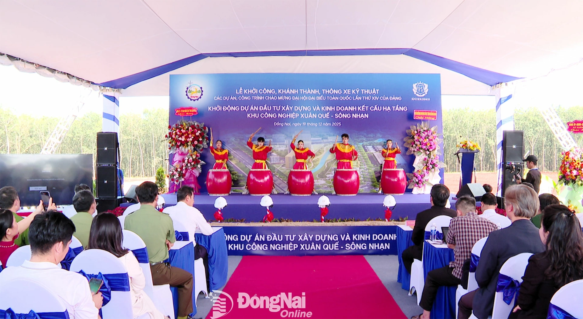| Nghi thức khởi động Dự án Đầu tư xây dựng Khu công nghiệp Xuân Quế - Sông Nhạn giai đoạn 1. Ảnh: Hoàng Vũ |