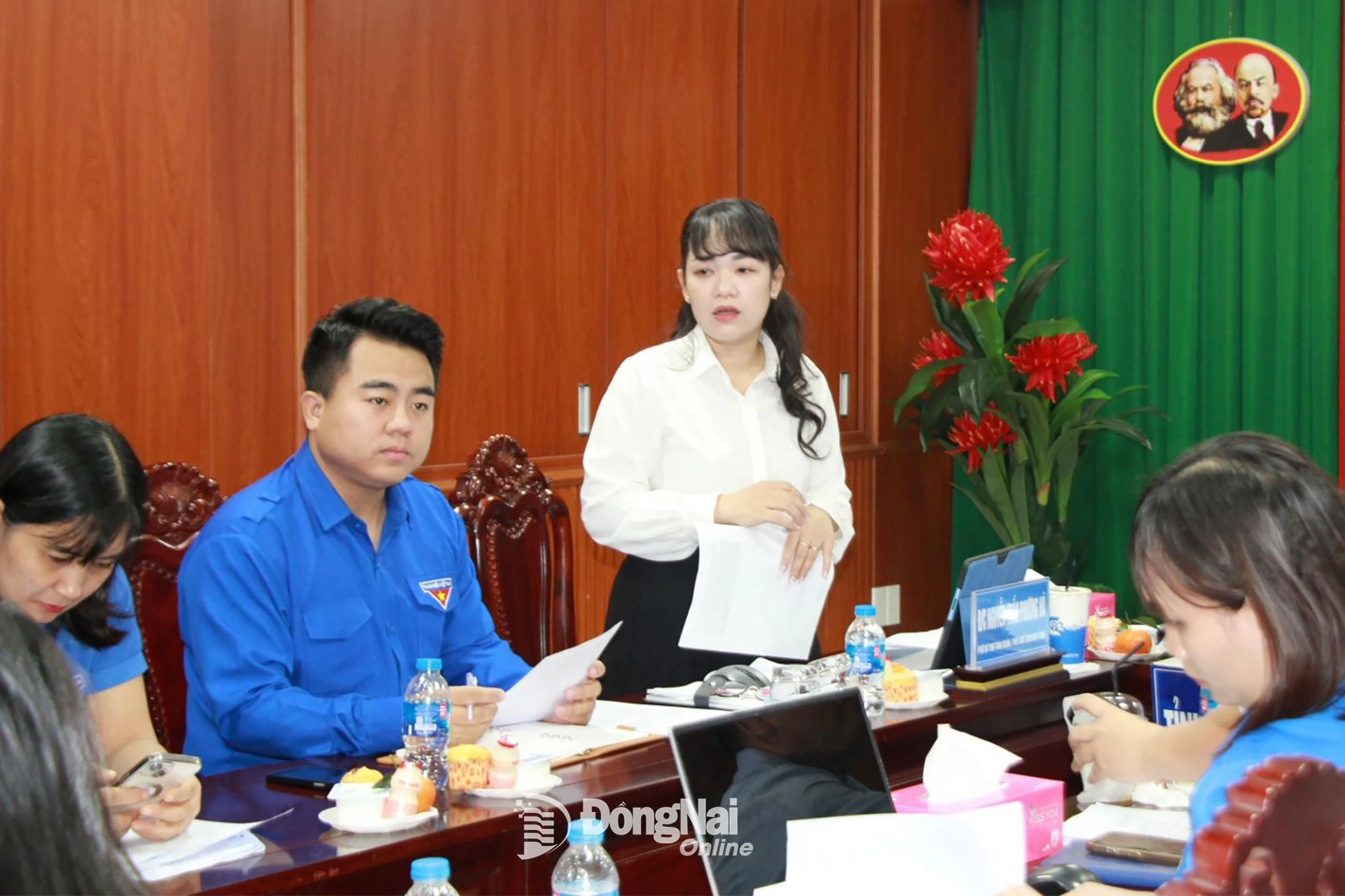 | Phó Bí thư Tỉnh đoàn, Phó Chủ tịch Hội Sinh viên tỉnh Đồng Nai Nguyễn Trần Phương Hà trao đổi tại hội nghị. Ảnh: Nga Sơn |