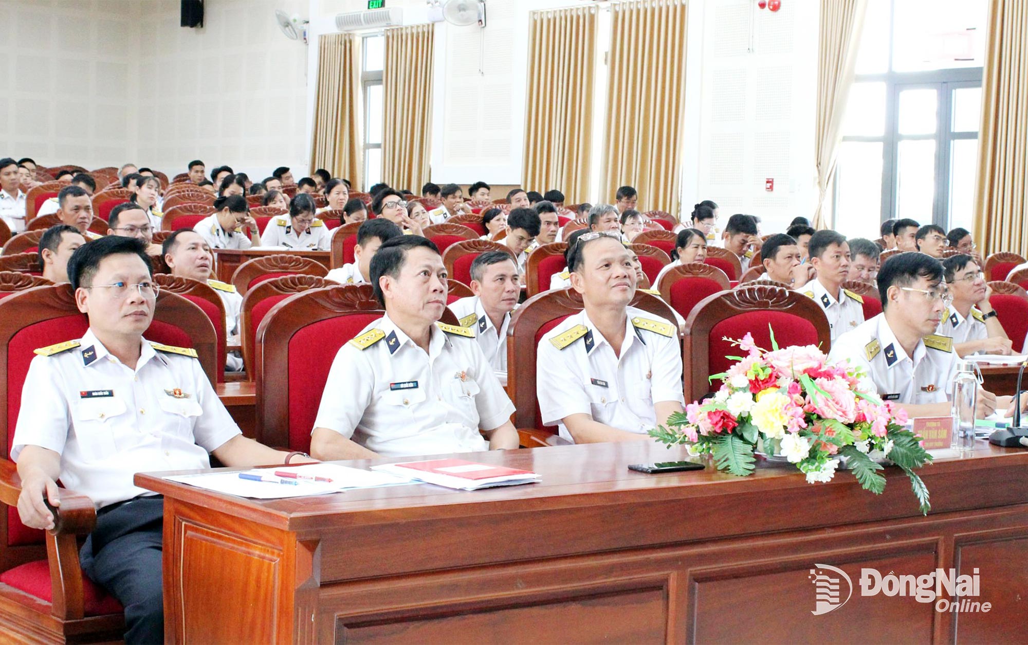 | Cán bộ, quân nhân đơn vị dự hội nghị. Ảnh: Sang Tiến |