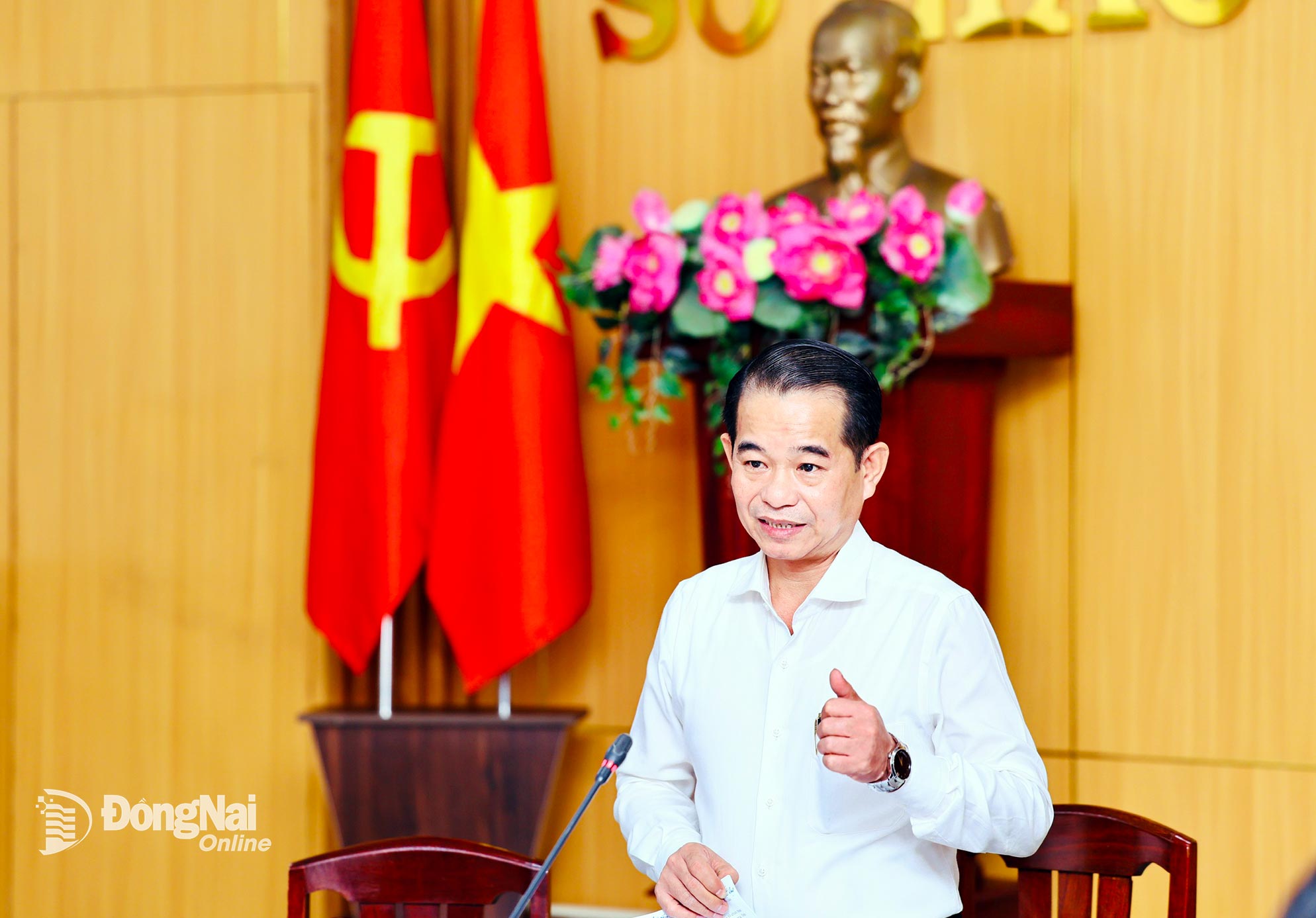 | Đồng chí Thái Bảo, Phó Bí thư Tỉnh ủy, Trưởng ban Tổ chức Tỉnh ủy Đồng Nai phát biểu tại buổi làm việc. Ảnh: Công Nghĩa |