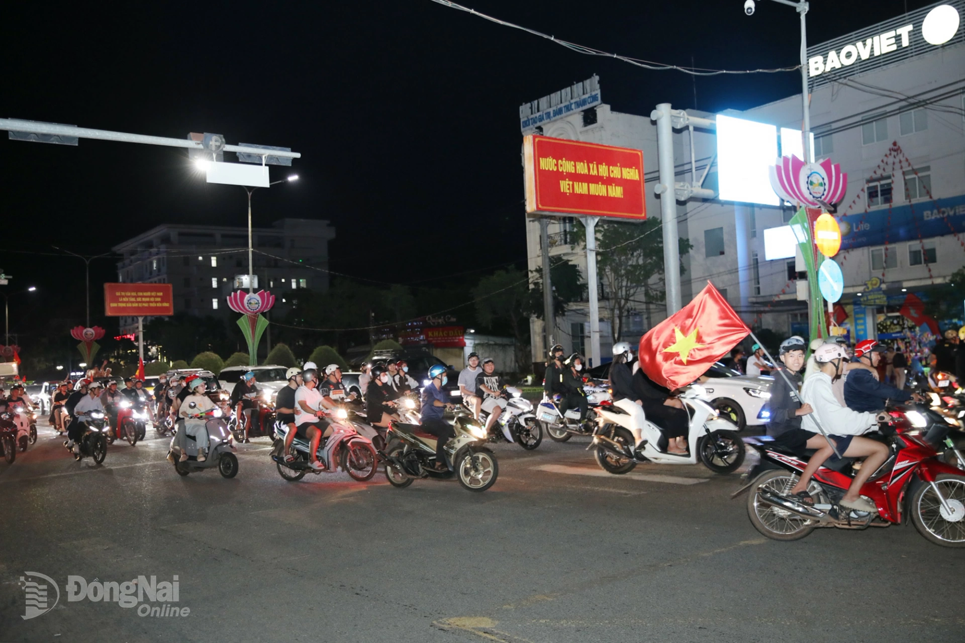 | Ngay sau chiến thắng của U22 Việt Nam, người hâm mộ bóng đá phường Bình Phước và Đồng Xoài đã đổ ra đường mừng chiến thắng. Ảnh: Trương Hiện |