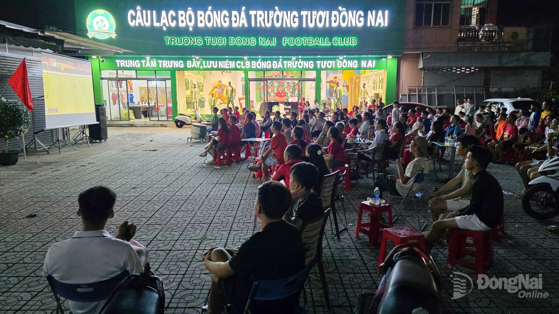 | Đông đảo người hâm mộ tập trung xem trận U22 Việt Nam và U22 Thái Lan tại Hội cổ động viên CLB bóng đá Trường Tươi Đồng Nai. Ảnh: Trương Hiện |