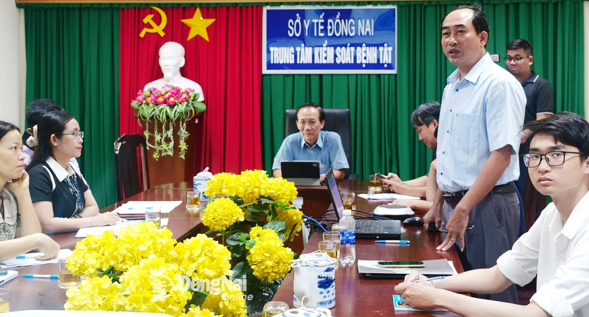 | Lãnh đạo Khoa Phòng, chống bệnh truyền nhiễm, Trung tâm Kiểm soát bệnh tật tỉnh Đồng Nai báo cáo tình hình dịch bệnh trên địa bàn tỉnh trong năm 2025. Ảnh: Hạnh Dung |