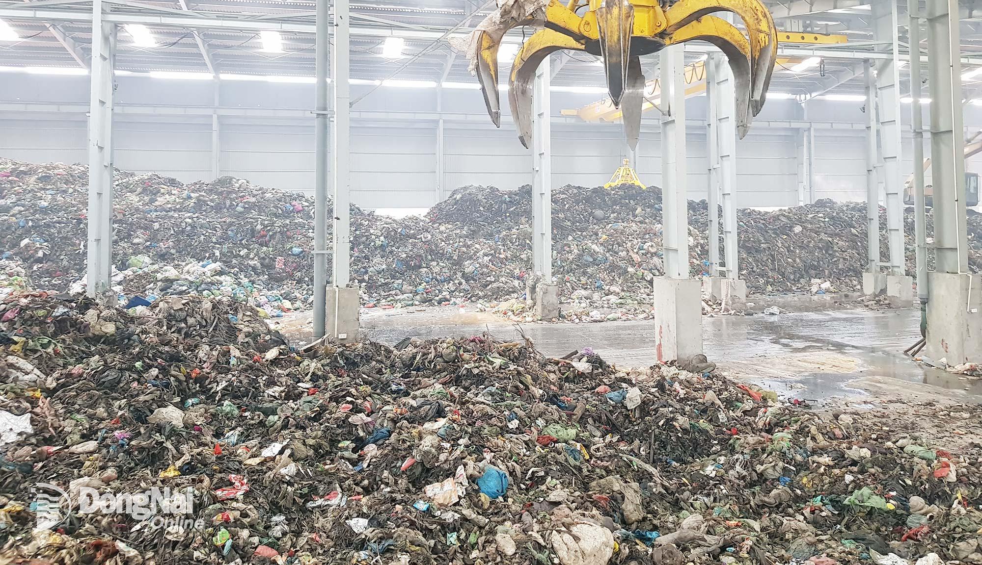 | Xử lý rác thải sinh hoạt bên trong Nhà máy xử lý rác Đồng Xoài. Ảnh: CTV |