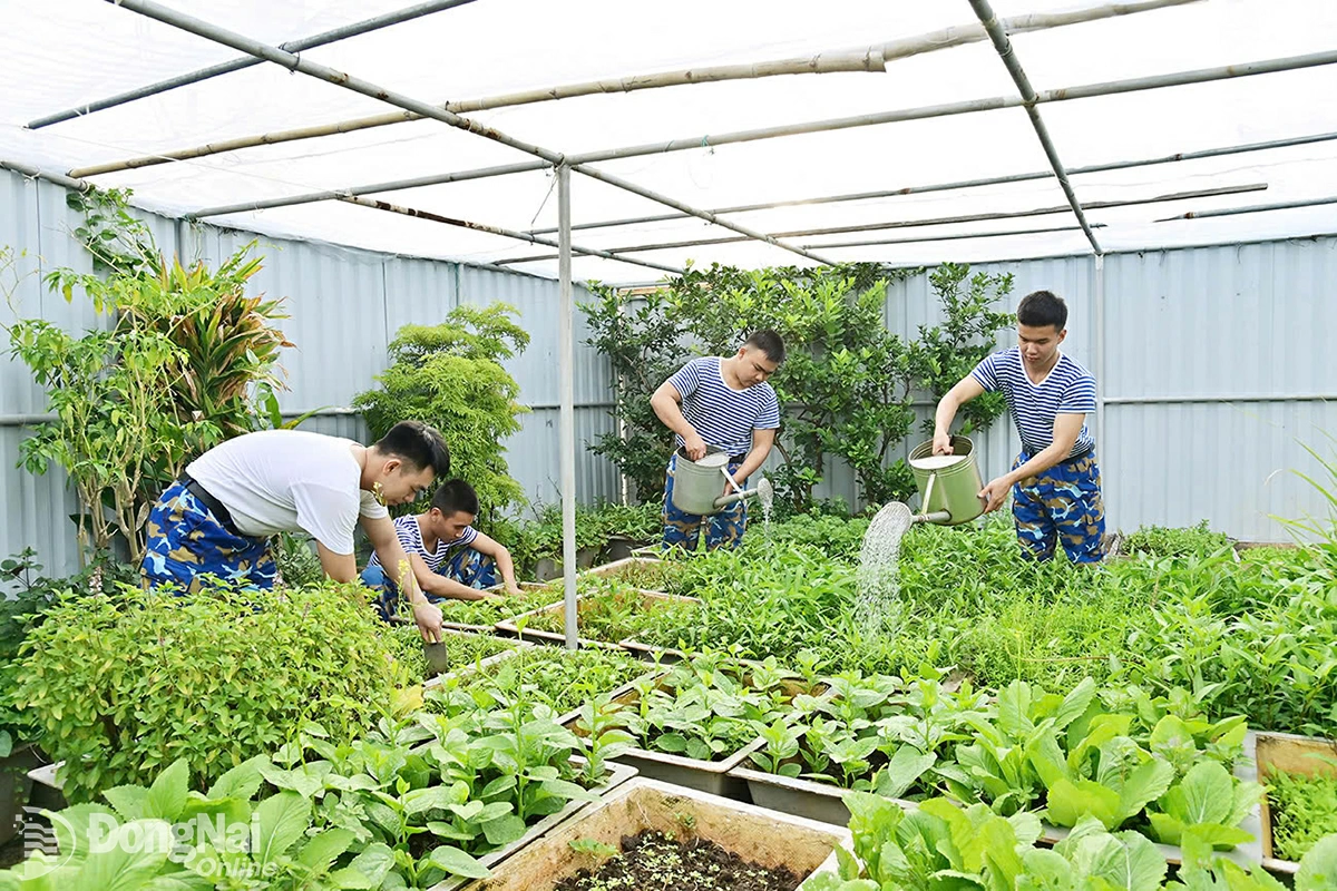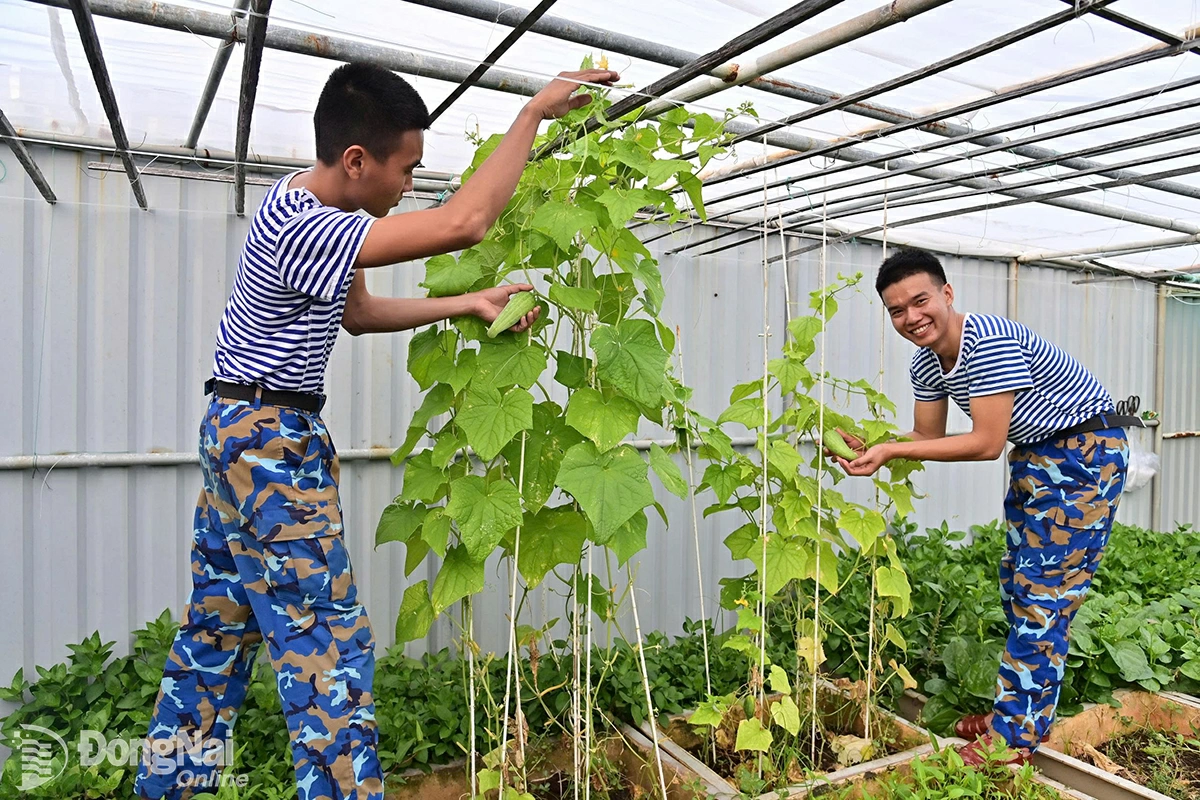| Các chiến sĩ tăng gia sản xuất. Ảnh: Văn Đường |