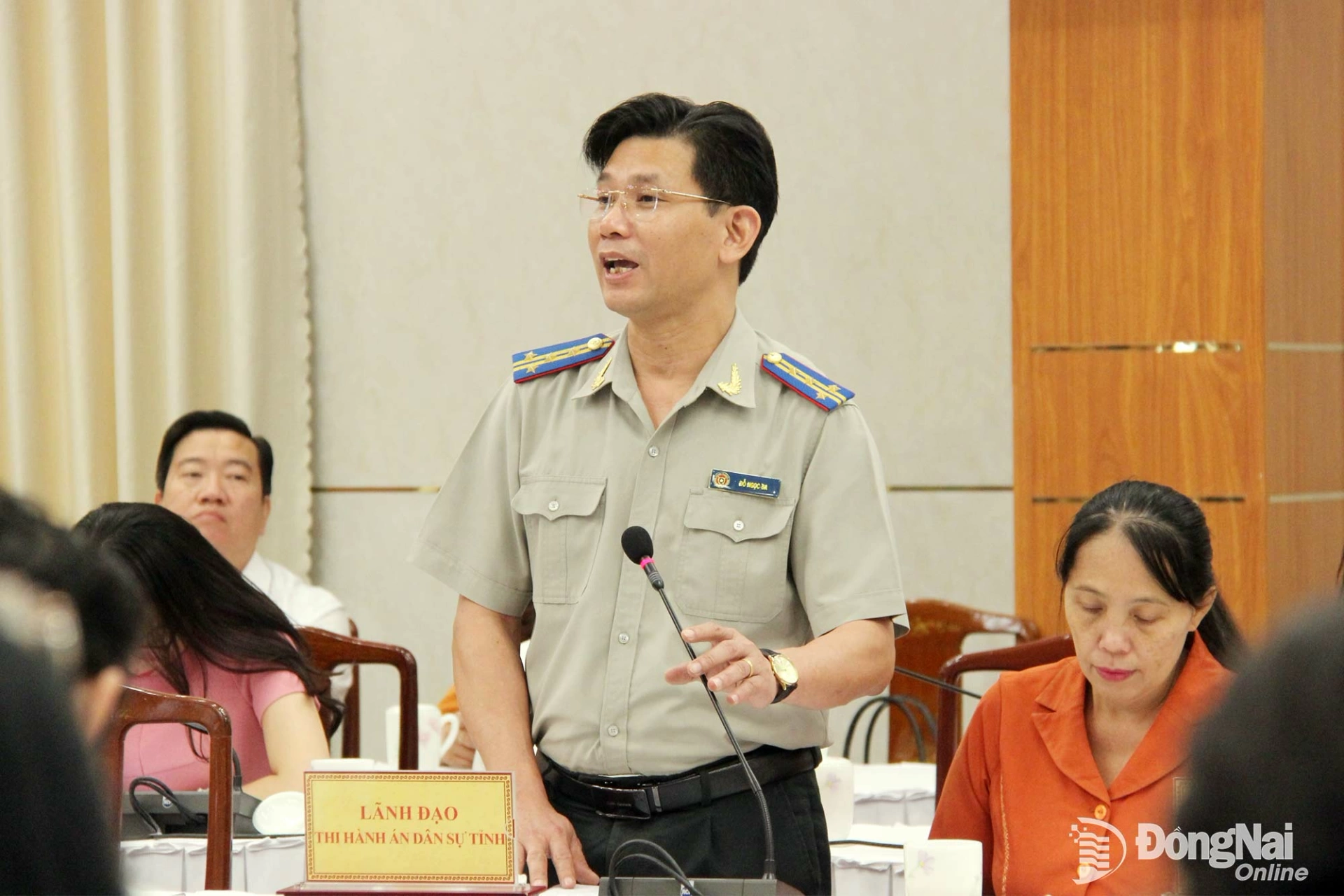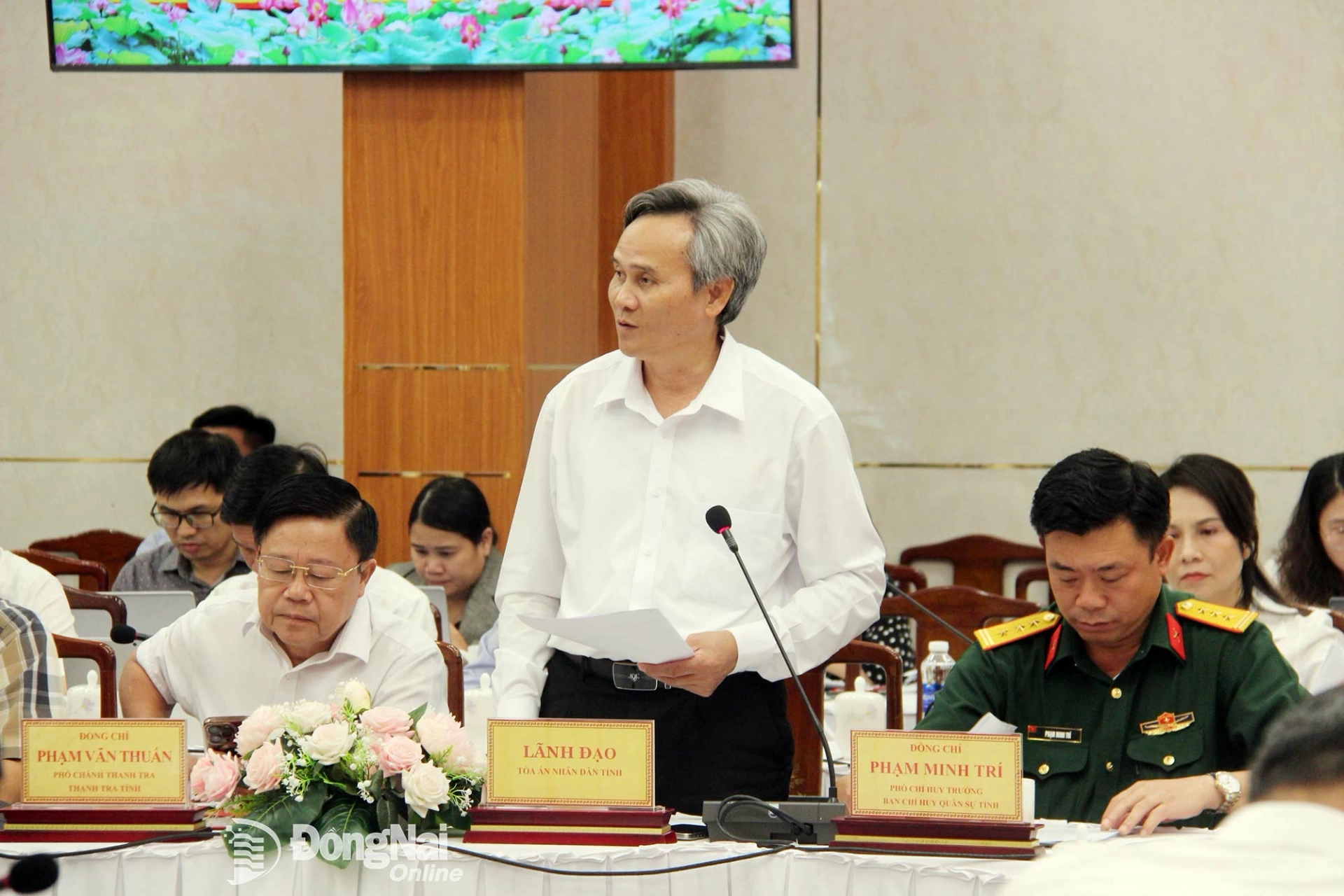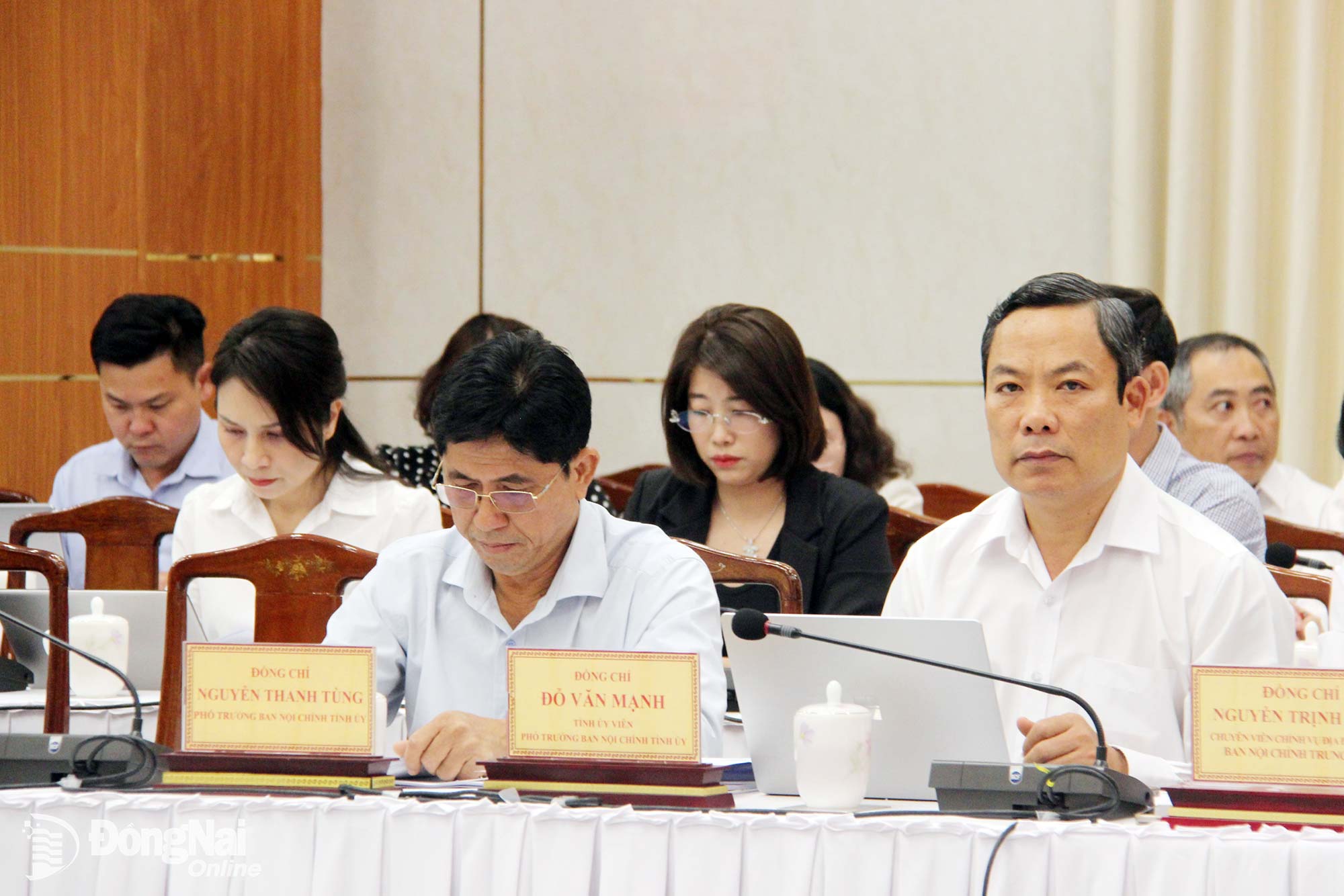 Đồng chí Nguyễn Minh Hợi, Ủy viên Ban Thường vụ Tỉnh ủy, Trưởng ban Nội chính Tỉnh ủy Đồng Nai báo cáo tại hội nghị. Ảnh: Trần Danh