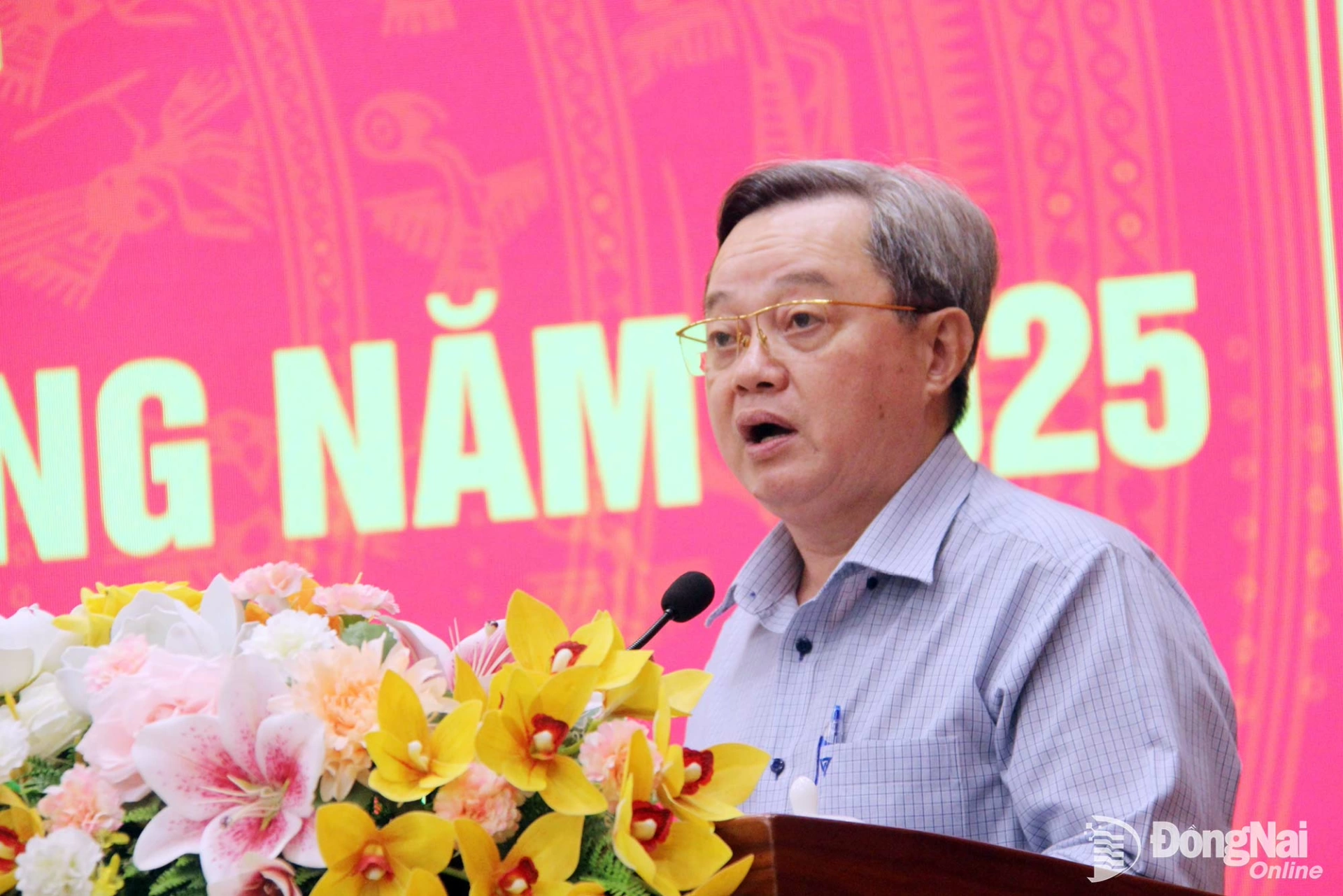 Đồng chí Tôn Ngọc Hạnh, Ủy viên dự khuyết Trung ương Đảng, Phó Bí thư Thường trực Tỉnh ủy, Chủ tịch HĐND tỉnh Đồng Nai phát biểu chỉ đạo tại hội nghị. Ảnh: Trần Danh