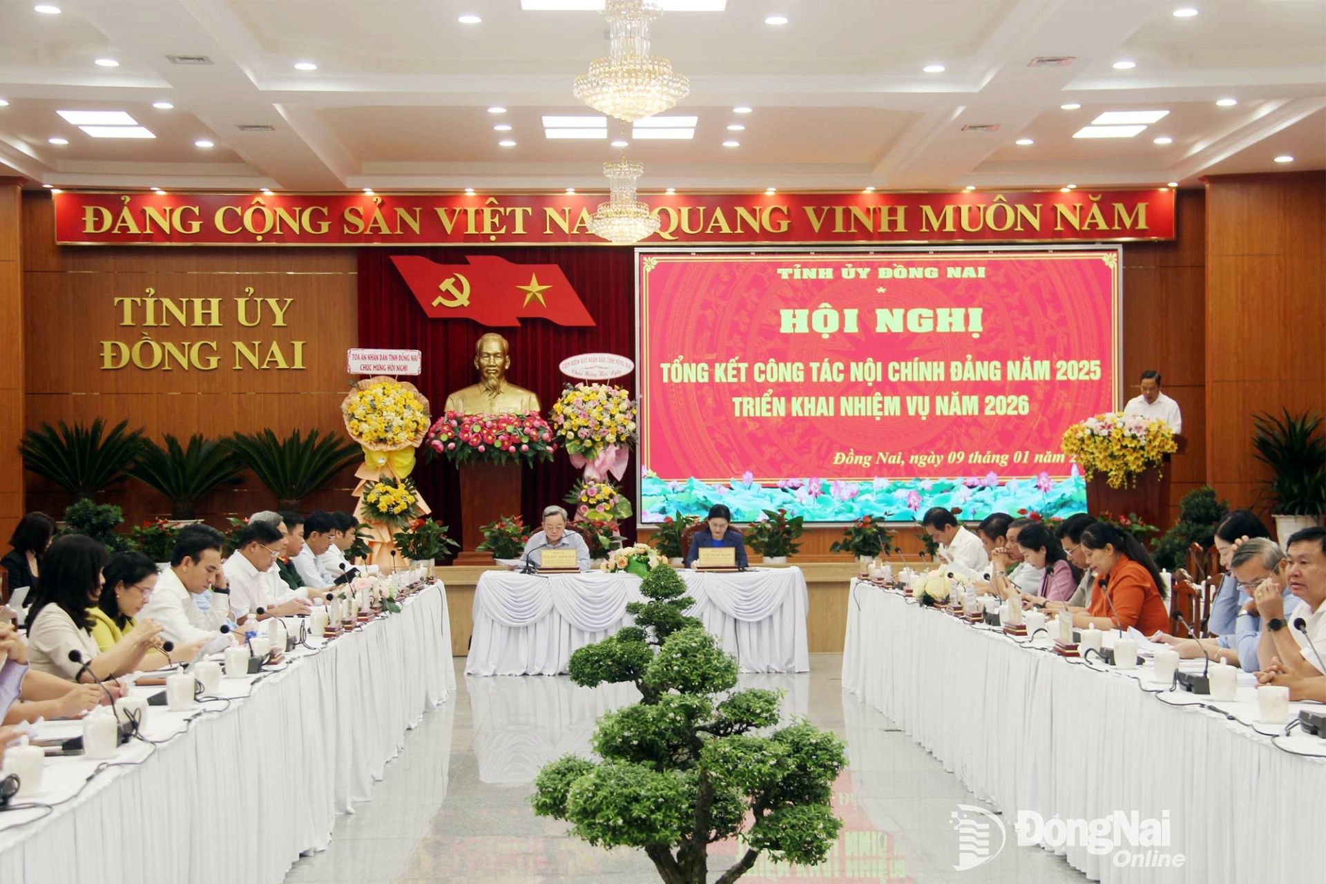 (ĐN) - Chiều 9-1, Thường trực Tỉnh ủy Đồng Nai tổ chức hội nghị tổng kết công tác ngành nội chính Đảng năm 2025 và triển khai nhiệm vụ năm 2026. Các đồng chí: Tôn Ngọc Hạnh, Ủy viên dự khuyết Trung ương Đảng, Phó Bí thư Thường trực Tỉnh ủy, Chủ tịch HĐND tỉnh; Nguyễn Minh Hợi, Ủy viên Ban Thường vụ Tỉnh ủy, Trưởng ban Nội chính Tỉnh ủy chủ trì hội nghị.