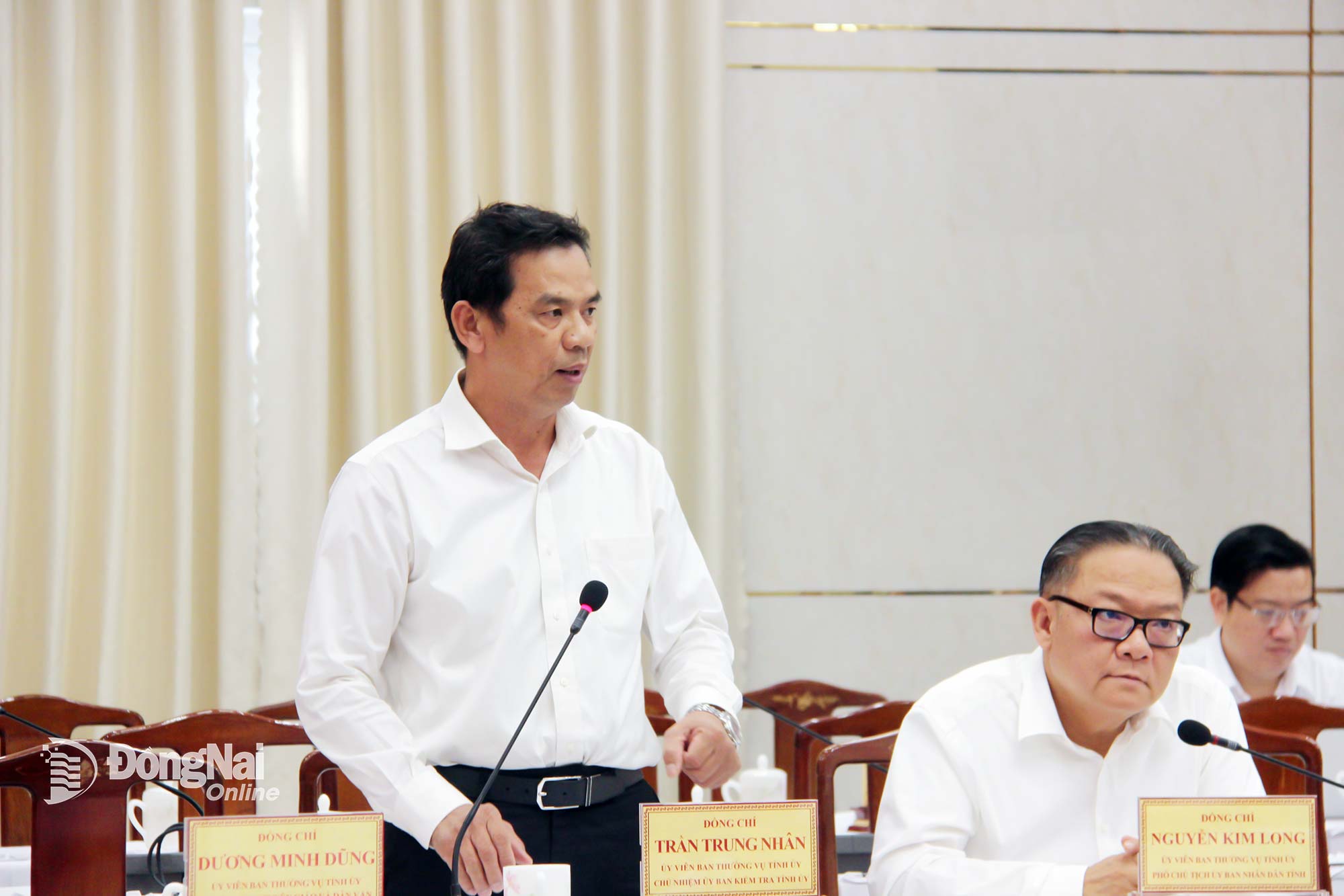 Đồng chí Trần Trung Nhân, Ủy viên Ban Thường vụ Tỉnh ủy, Chủ nhiệm Ủy ban Kiểm tra Tỉnh ủy Đồng Nai phát biểu tại hội nghị. Ảnh: Trần Danh