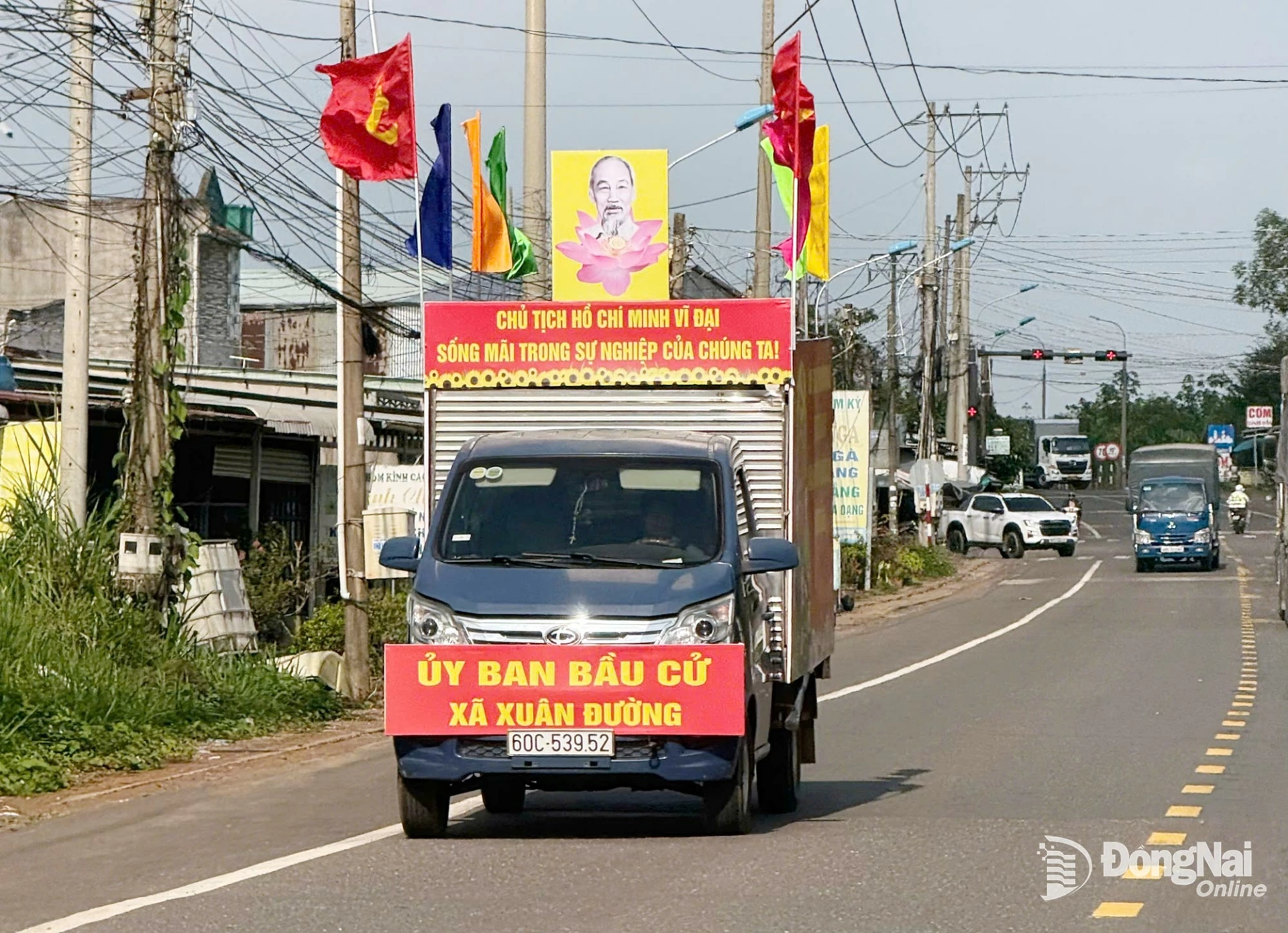 | Xã Xuân Đường tổ chức xe tuyên truyền đến tận các ấp trước ngày bầu cử đại biểu Quốc hội khóa XVI và đại biểu HĐND các cấp nhiệm kỳ 2026-2031. Ảnh: Công Nghĩa |
