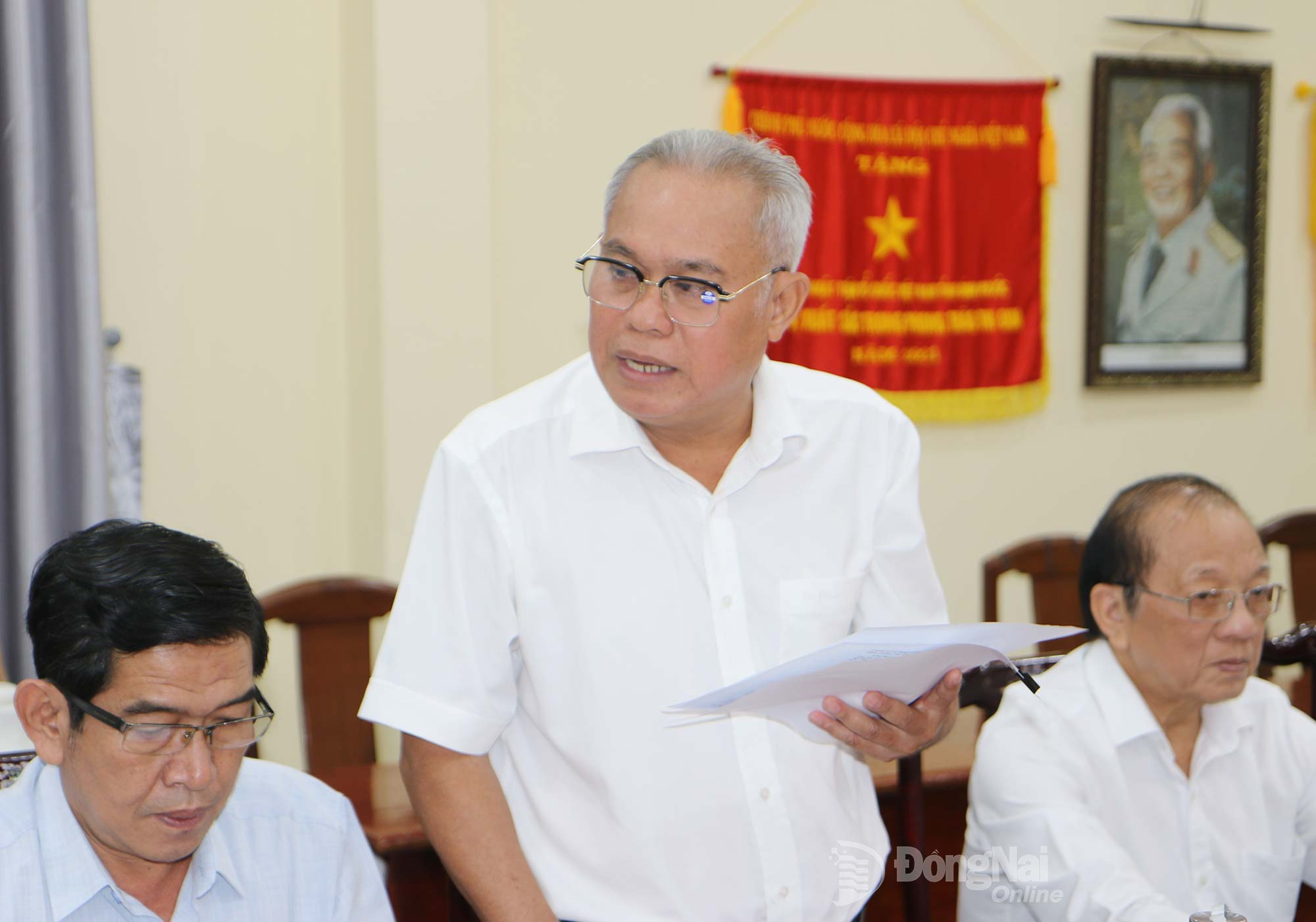 | Phó Chủ tịch Liên hiệp các Hội khoa học và kỹ thuật tỉnh Đồng Nai Nguyễn Văn Nhãn tham luận tại hội nghị. Ảnh: Văn Truyên |