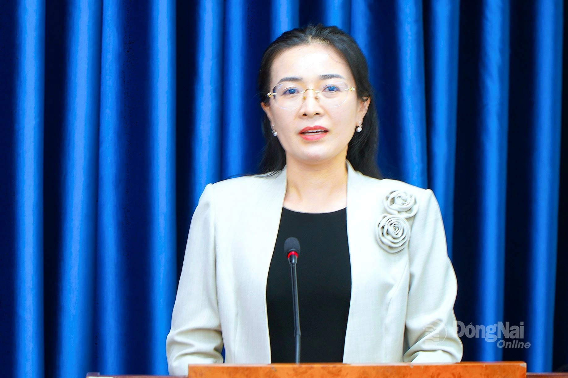| Tỉnh ủy viên, Giám đốc Sở Tư pháp tỉnh Đồng Nai Phạm Thị Bích Thủy chủ trì và phát biểu tại hội nghị. Ảnh: An Nhơn |