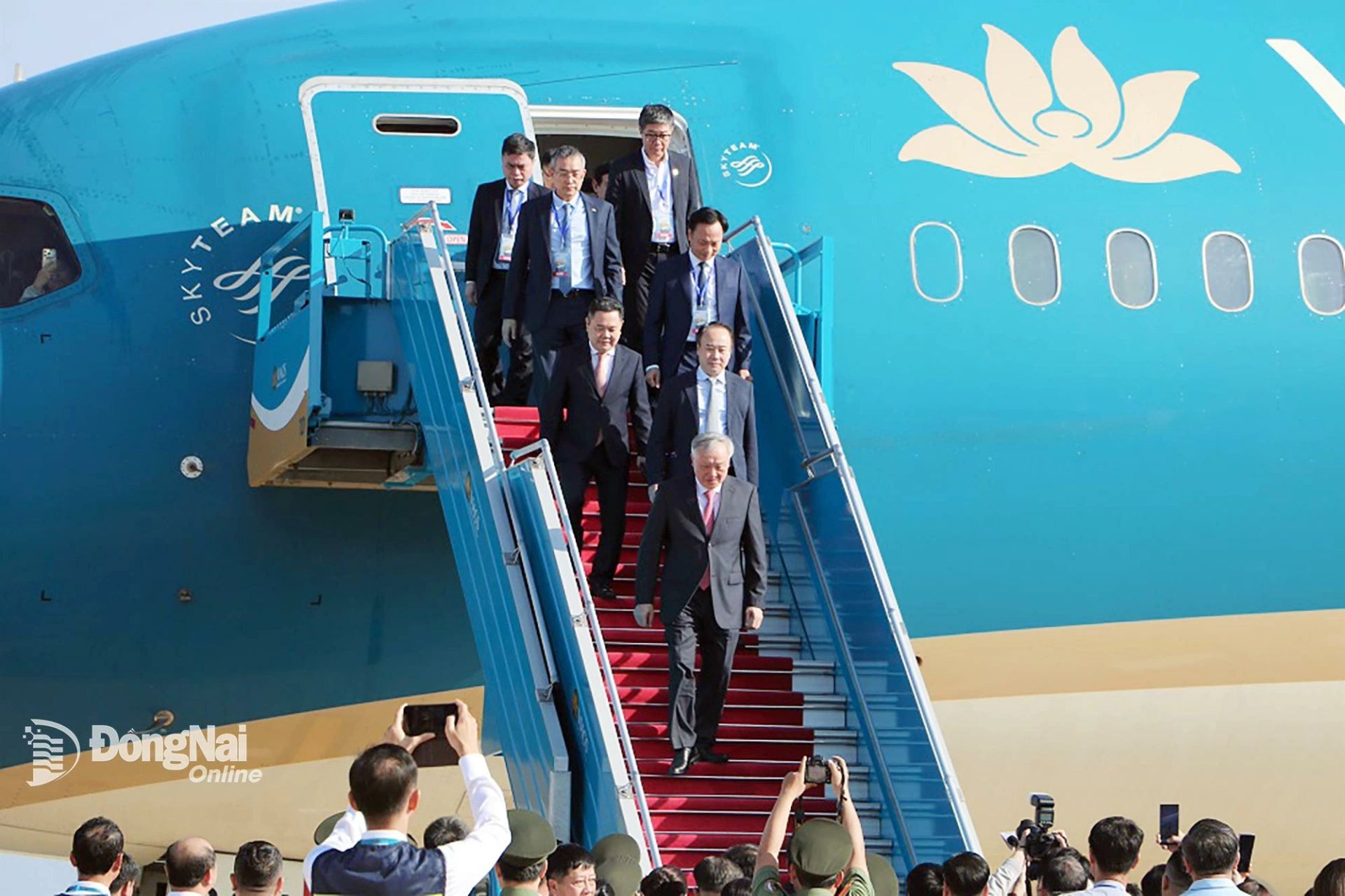| Phó Thủ tướng Thường trực Chính phủ Nguyễn Hòa Bình và các đại biểu đáp chuyến bay chính thức đầu tiên đến Sân bay Long Thành. Ảnh: Phạm Tùng |