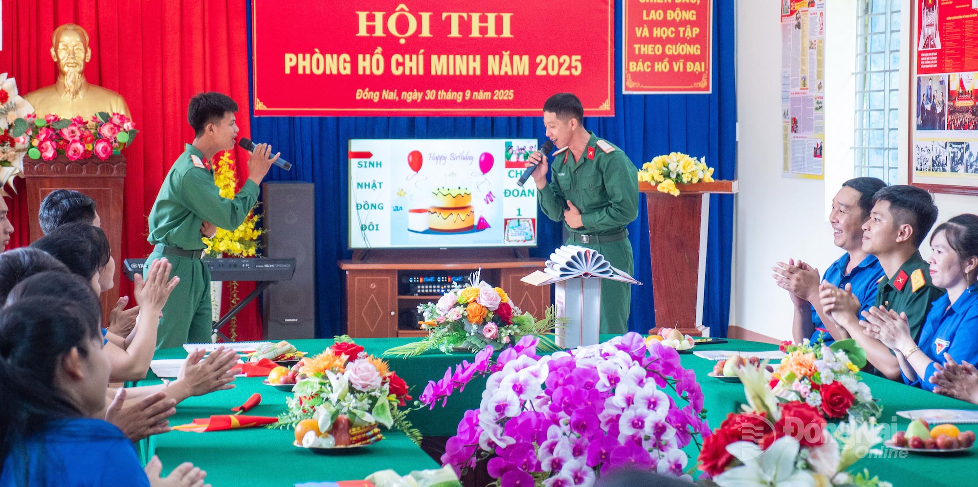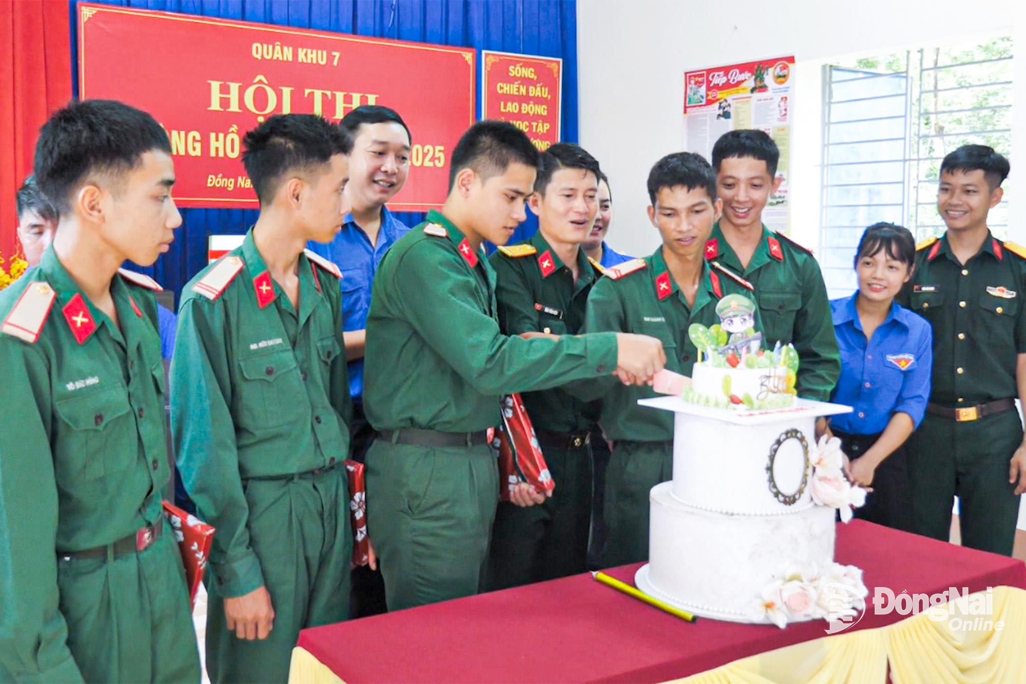 | Tổ chức sinh nhật cho chiến sĩ tại phòng Hồ Chí Minh. Ảnh: Xuân Lượng |